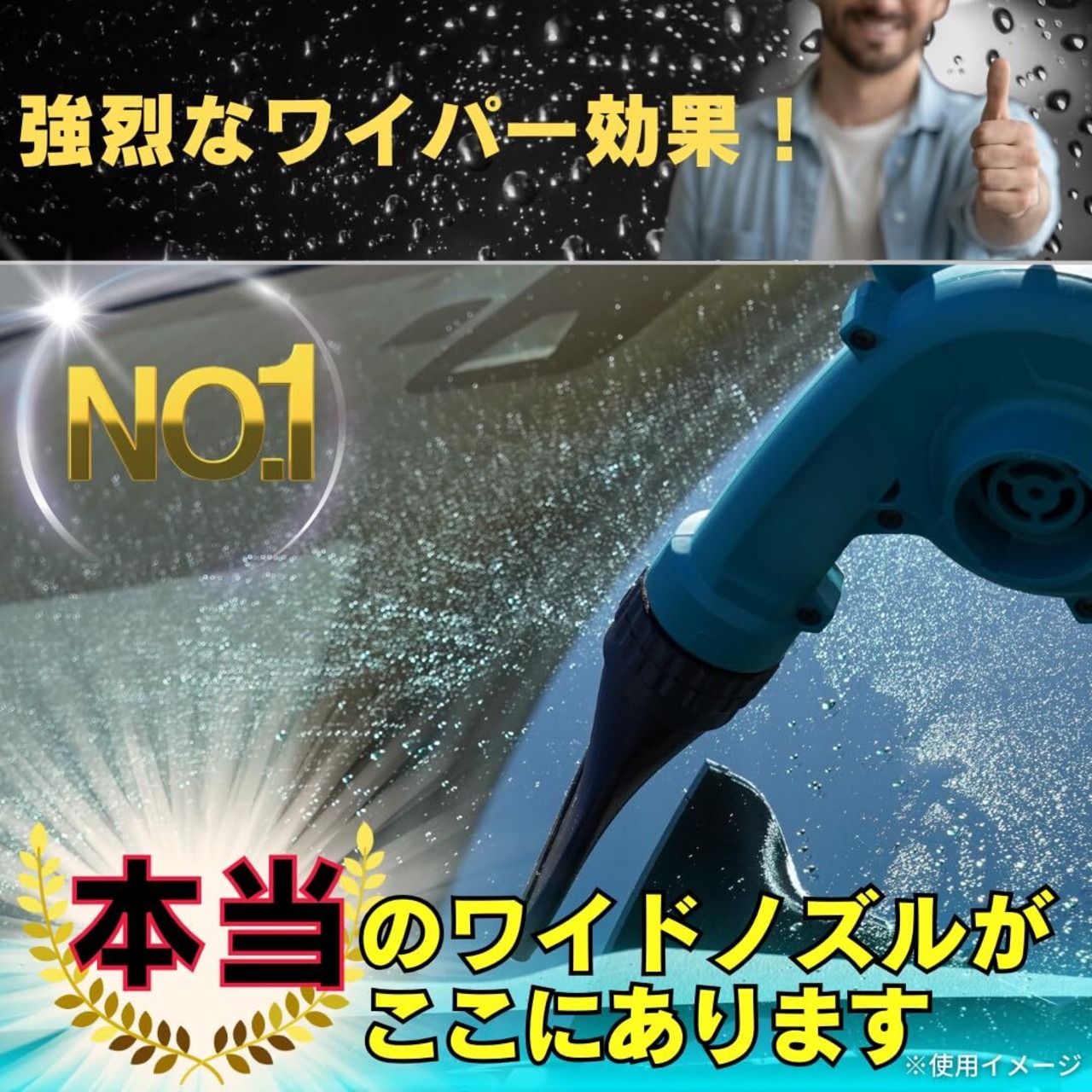【️安心の日本製】洗車用水切りワイドノズル。特殊形状内部ジェットフィンで短い全長でもノズル両端まで強い風が吹き出します。18cm幅広スリット形状で水切れ抜群、効率よく水滴を吹き飛ばします!