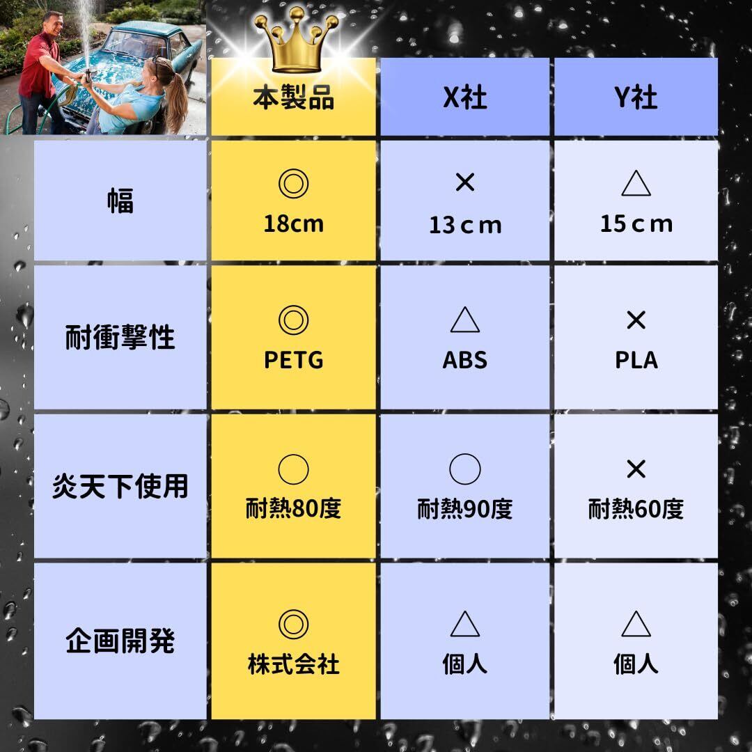 【️ワイパー効果抜群の18cmワイドノズル】幅の狭いノズル(15cm以下)では時間のかかる水切りも、ワイドノズルで効率的です。