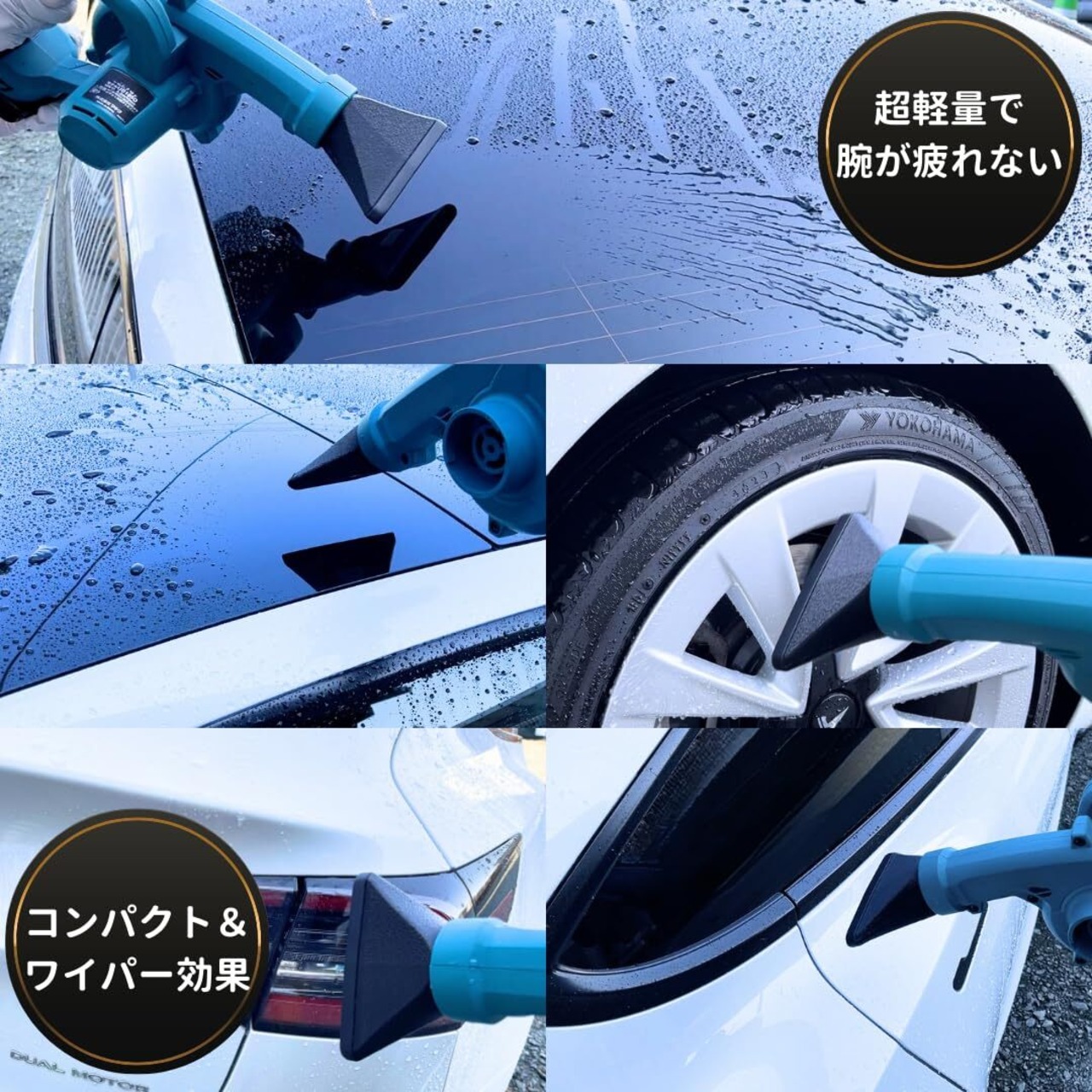 【️激風ワイド/洗車後の水滴を吹き飛ばす!】洗車後の水切りに特化し、工学部出身の設計者が緻密な計算と実験を繰り返し検証しました。キズ保護性、端まで均等な強い風、柔軟な嵌合性、堅牢構造かつ軽量な取り回しにおいての最適な洗車用ワイドノズルを突き詰めました。(安心の日本製)