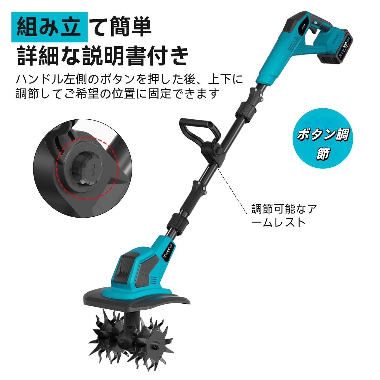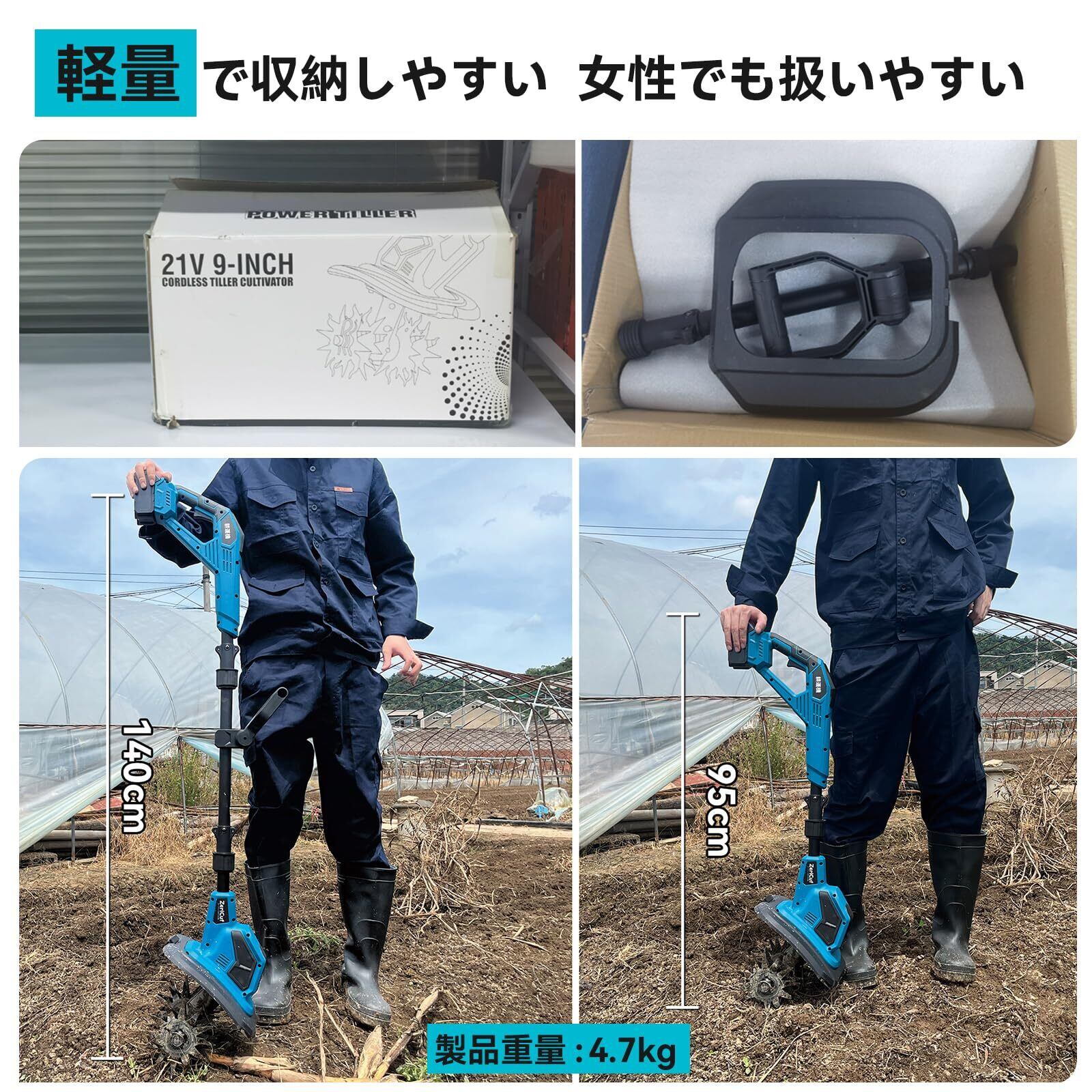 【在庫限り】耕運機 家庭用 充電式【業界初3段階式脱着-2段階式切替ミニ耕運機】900W+360RPM强力モーター付3面冷却【耕宽255CM 耕深220MM】4.0Ahバッテリ*2+充電器が付属、18Vマキタバッテリー互換、170mm直径SK5マンガン鋼波型ブレード(軽量、取り付け簡単、収納便利、女性や高齢者でも楽にご使用いただけます)家庭菜園、庭園、農地に最適です 詳細な製品取扱説明書付属(青)