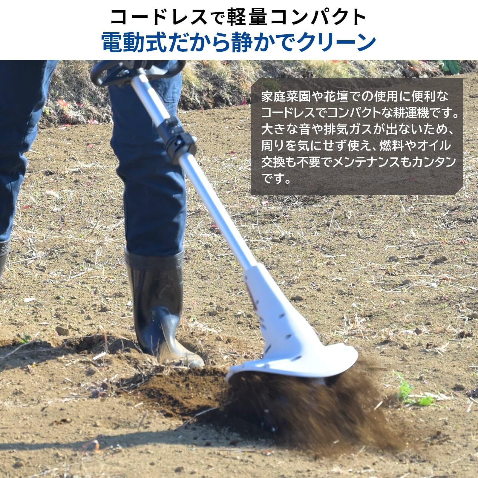 ●コードレスで軽量コンパクトな耕運機です。
