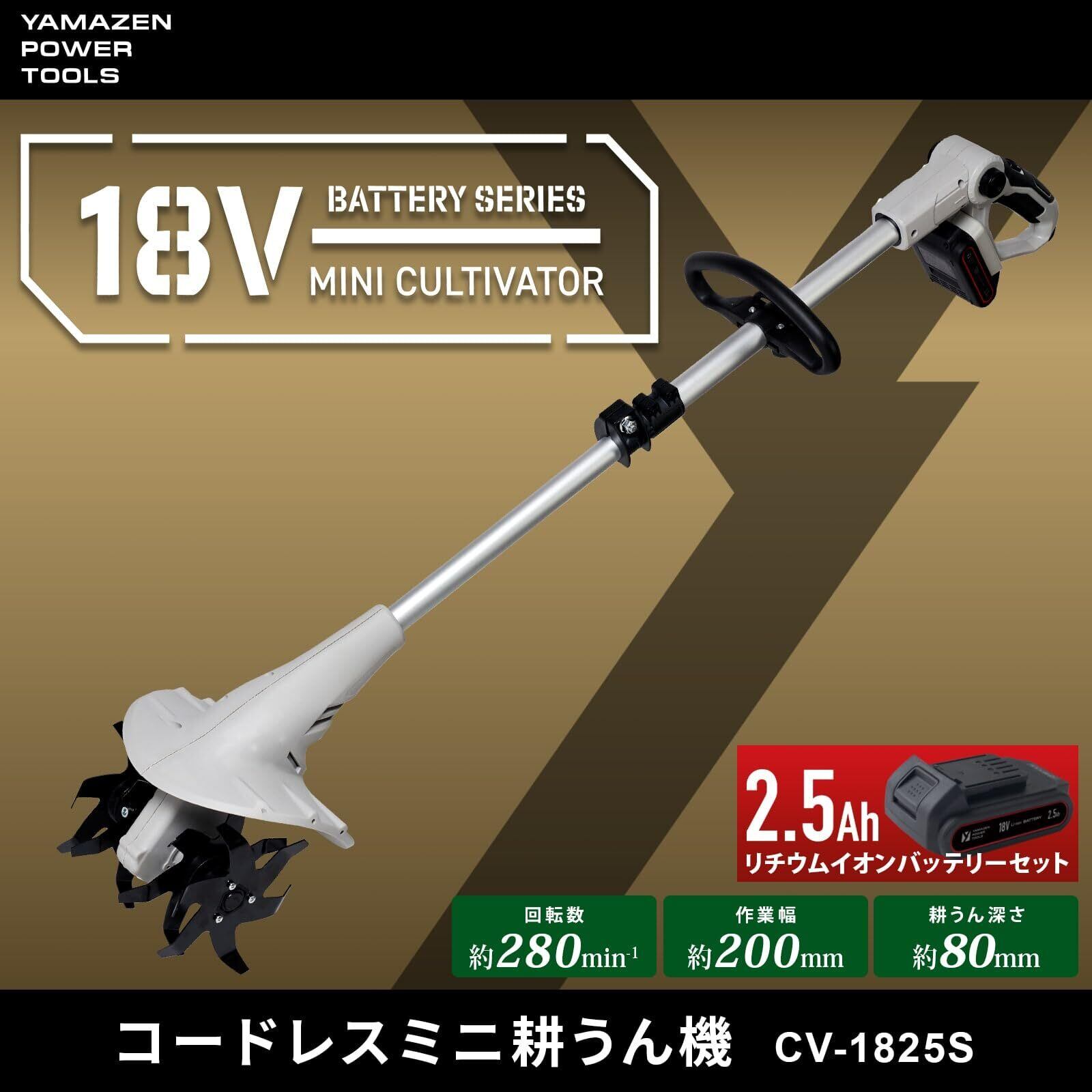山善(YAMAZEN) 充電式 耕運機 18V 電動 家庭用 軽量 小型 バッテリー付き 耕幅200mm 伸縮式ポール 家庭菜園 農業 耕うん機 CV-1825S