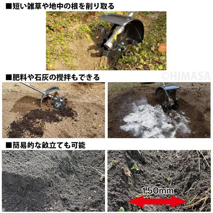 畑や花壇の耕うん、肥料や石灰の拡販