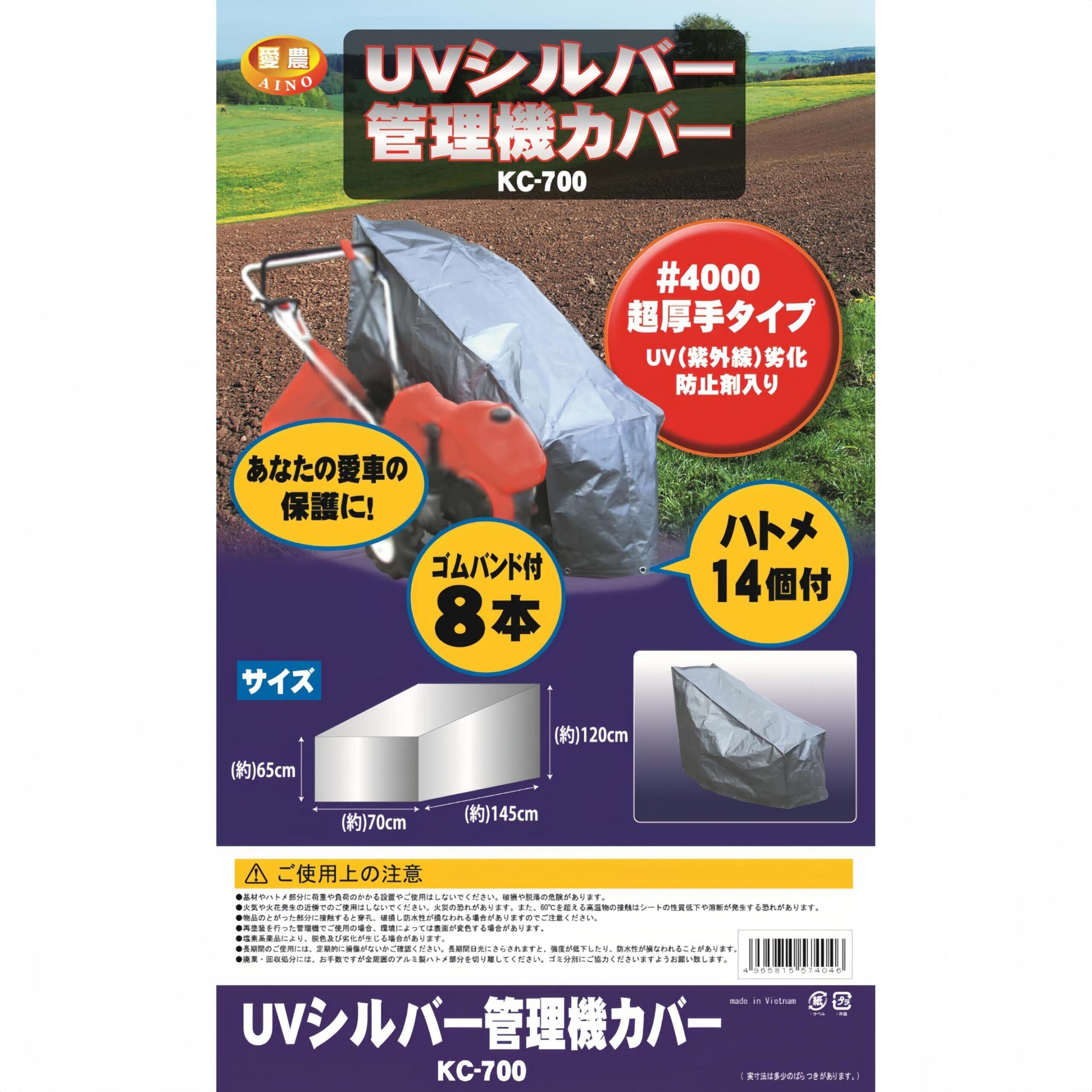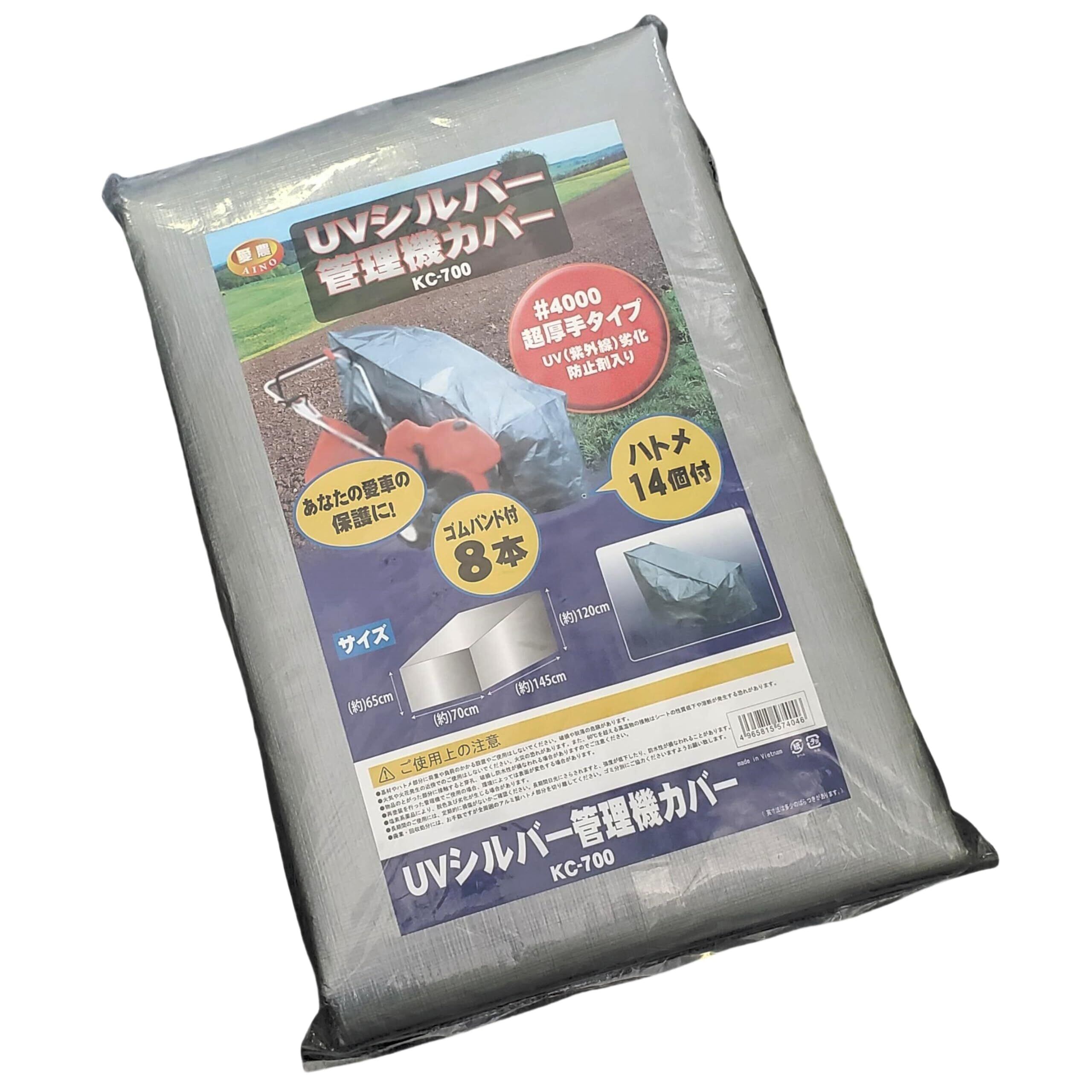 愛農 UVシルバー管理機カバー 耕耘機・管理機・家庭用小型農機の保管に! ●#4000超厚手シート ●UV(紫外線)劣化防止剤入り ●便利なハト目14個付き ●直ぐに使える。ゴムバンド8本入
