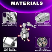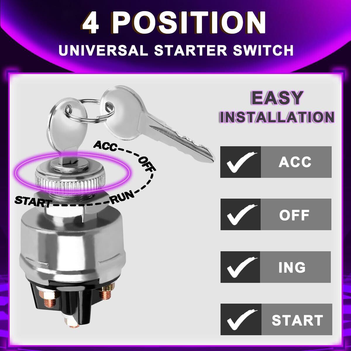【幅広い用途】イグニッション キー スイッチは、12V 車、トラック、トラクター、トレーラー、フォークリフト、自動車、ウッドチッパー、オートバイ、船舶、農業および屋外機器などに幅広く使用されています。