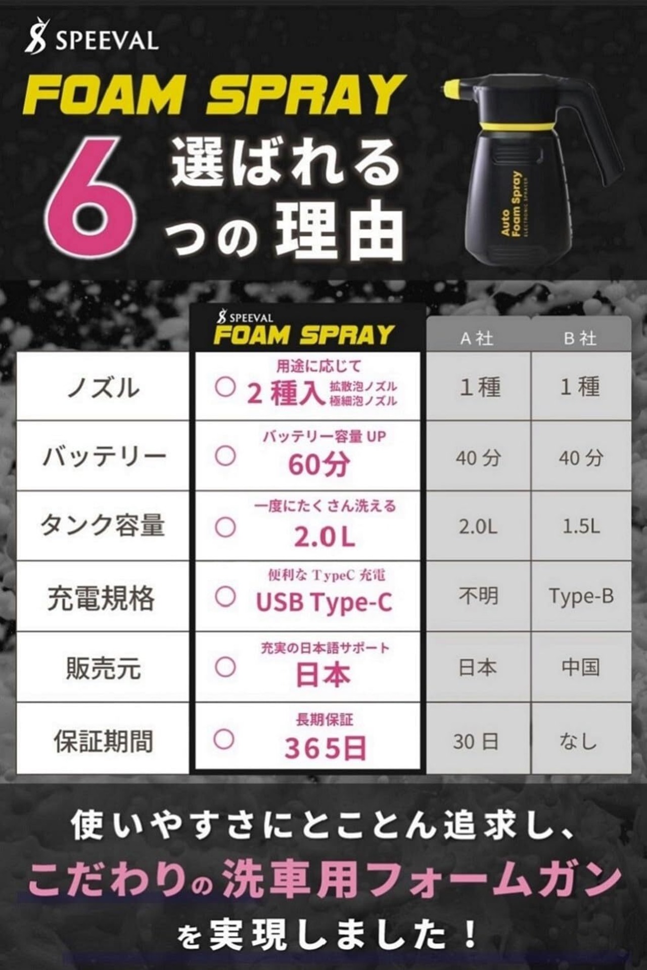 【特別価格】SPEEVAL 自動泡噴霧器 フォームガン 洗車 電動 コードレス 充電式 2.0L 泡洗車