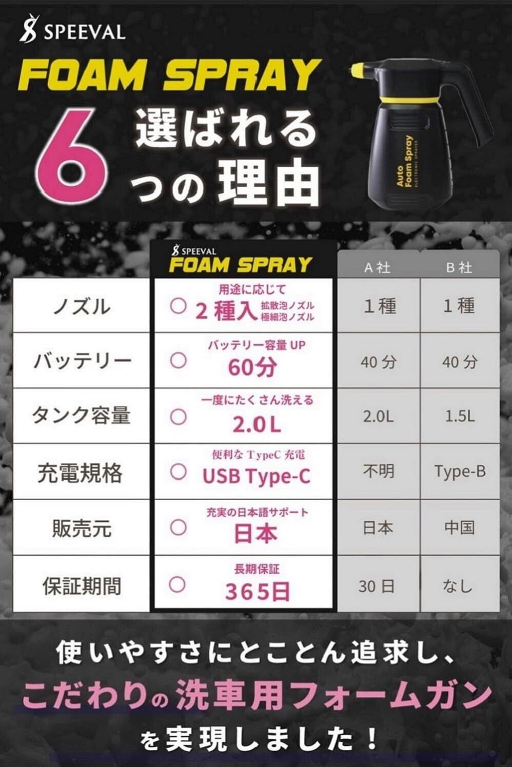 SPEEVAL 自動泡噴霧器 フォームガン 洗車 電動 コードレス 充電式 2.0L 泡洗車
