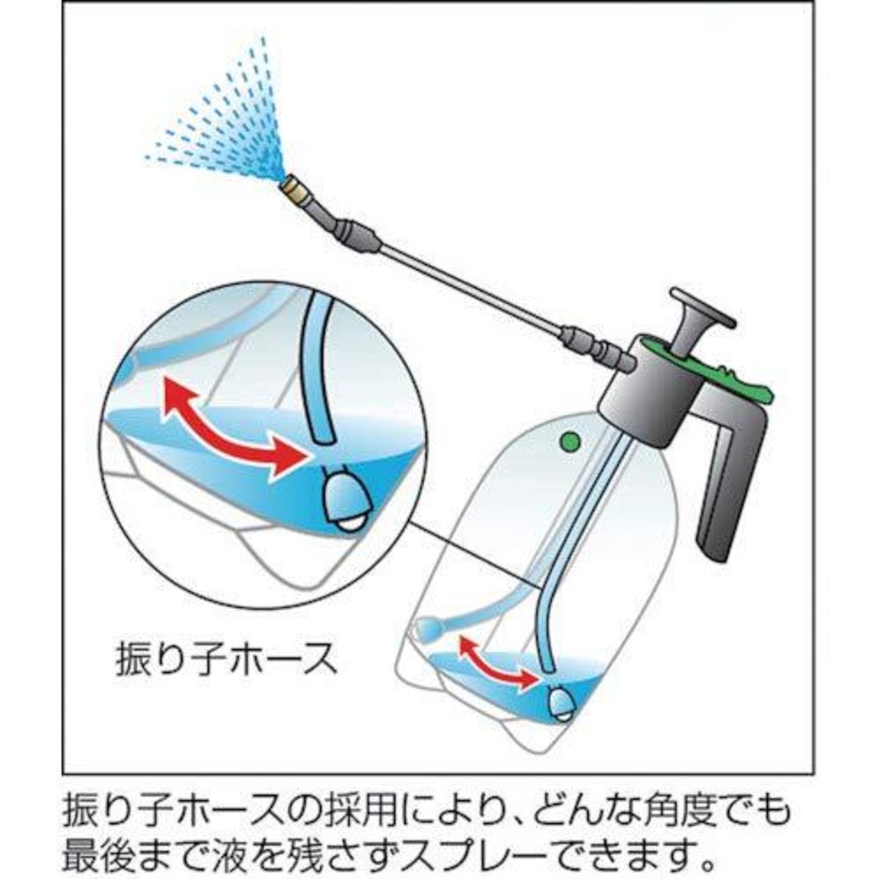 ●振り子ホースで、最後まで残さずスプレーできます。