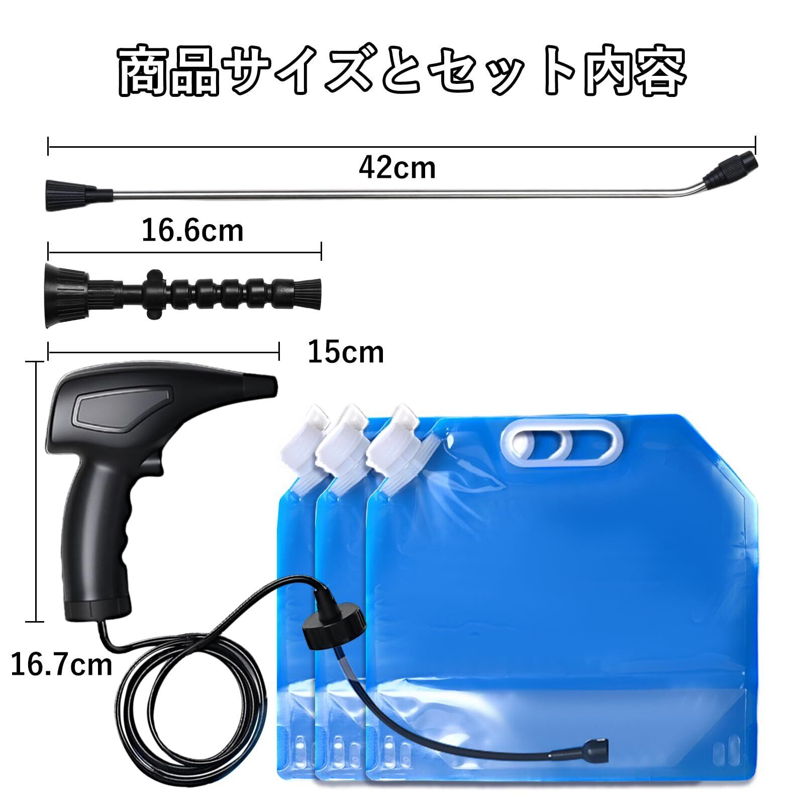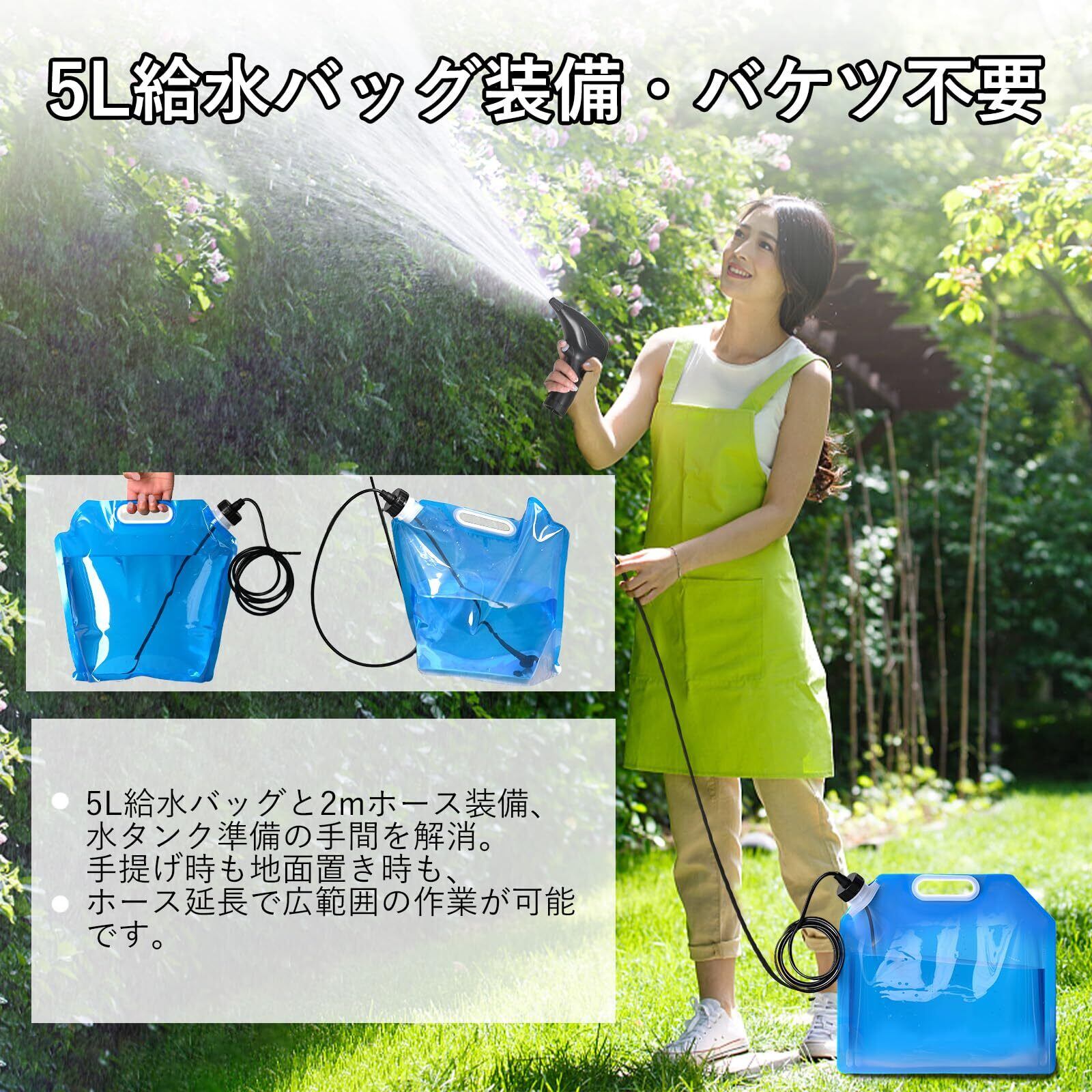 【電動噴霧器・水タンクも贈る】MOONPAI 電動スプレー 噴霧器 充電式 小型 5L水タンク 蓄圧しない 2m吸水パイプ 家庭用 握りやすい 軽量 散水機 霧吹き 園芸 農業用 家庭の掃除 ペットの入浴 ガーデン 花の水遣り (ロングノズあり、水タンク3個)