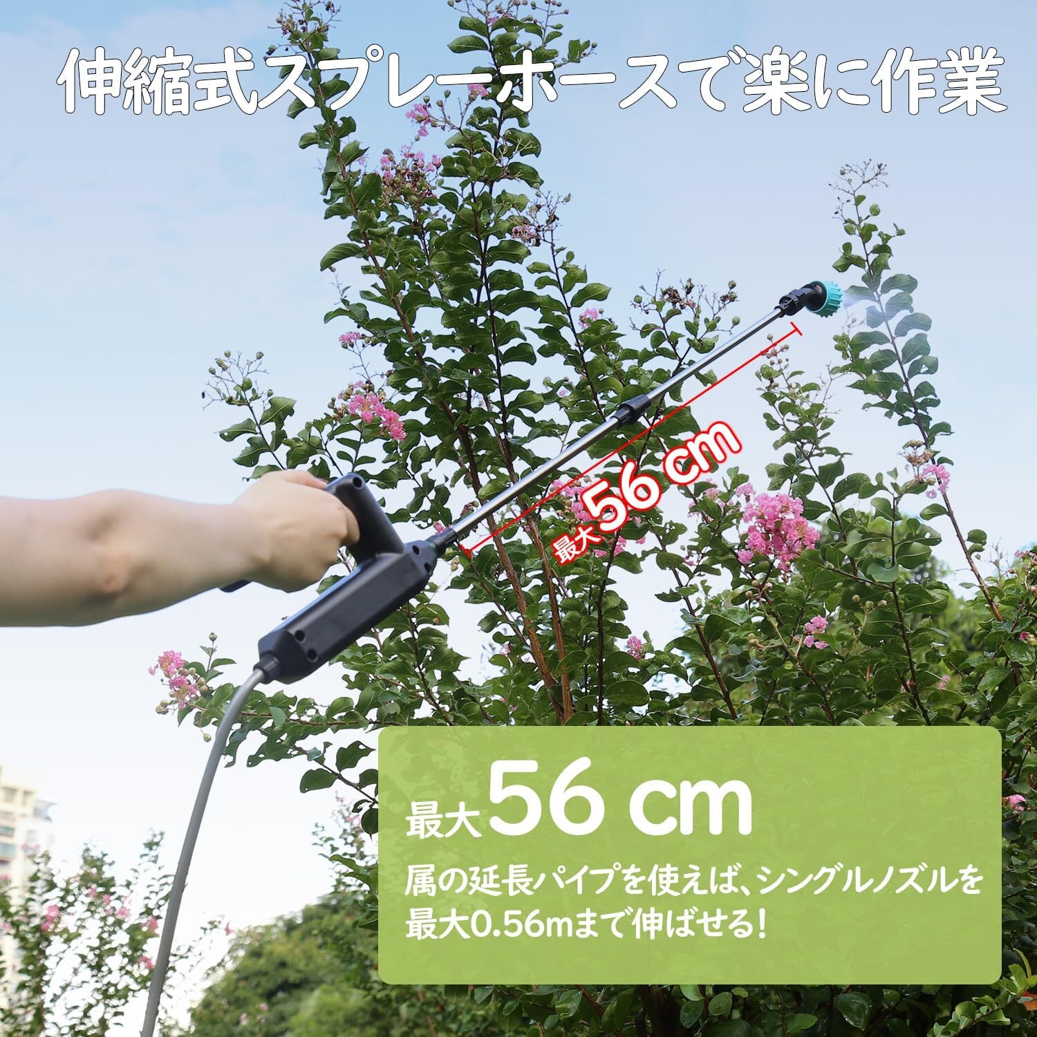 【伸縮スプレーバー】電動噴霧器のスプレーバーはステンレス製で、耐候性・耐腐食性に優れた特性をもちます。長年使用することができ、多くのお金を節約できます。スプレーバーの長さは30-55cmの間で自由に調整でき、長い距離や届きにくい場所にも楽にスプレーできます。