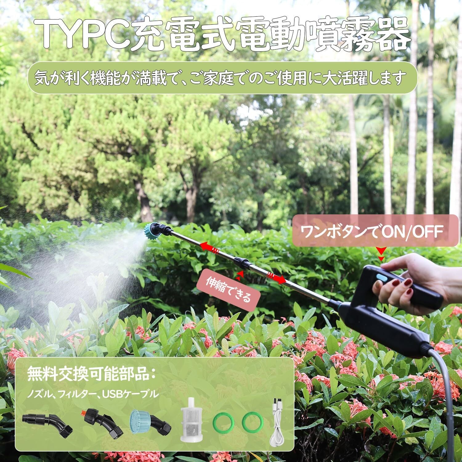 【特価セール】Richday 電動噴霧器 噴霧器 TYPC充電式 電池でラクラク 電動スプレー 2000mAh 2.5時間連続使用 3種類のノズル 延長ホース8M付 タンクなし 軽量 霧吹き 連続自動噴霧 圧力調整可 農薬散布 家庭園芸 家庭清掃 洗車散水 散布 エアコン洗浄 日本語取扱説明書