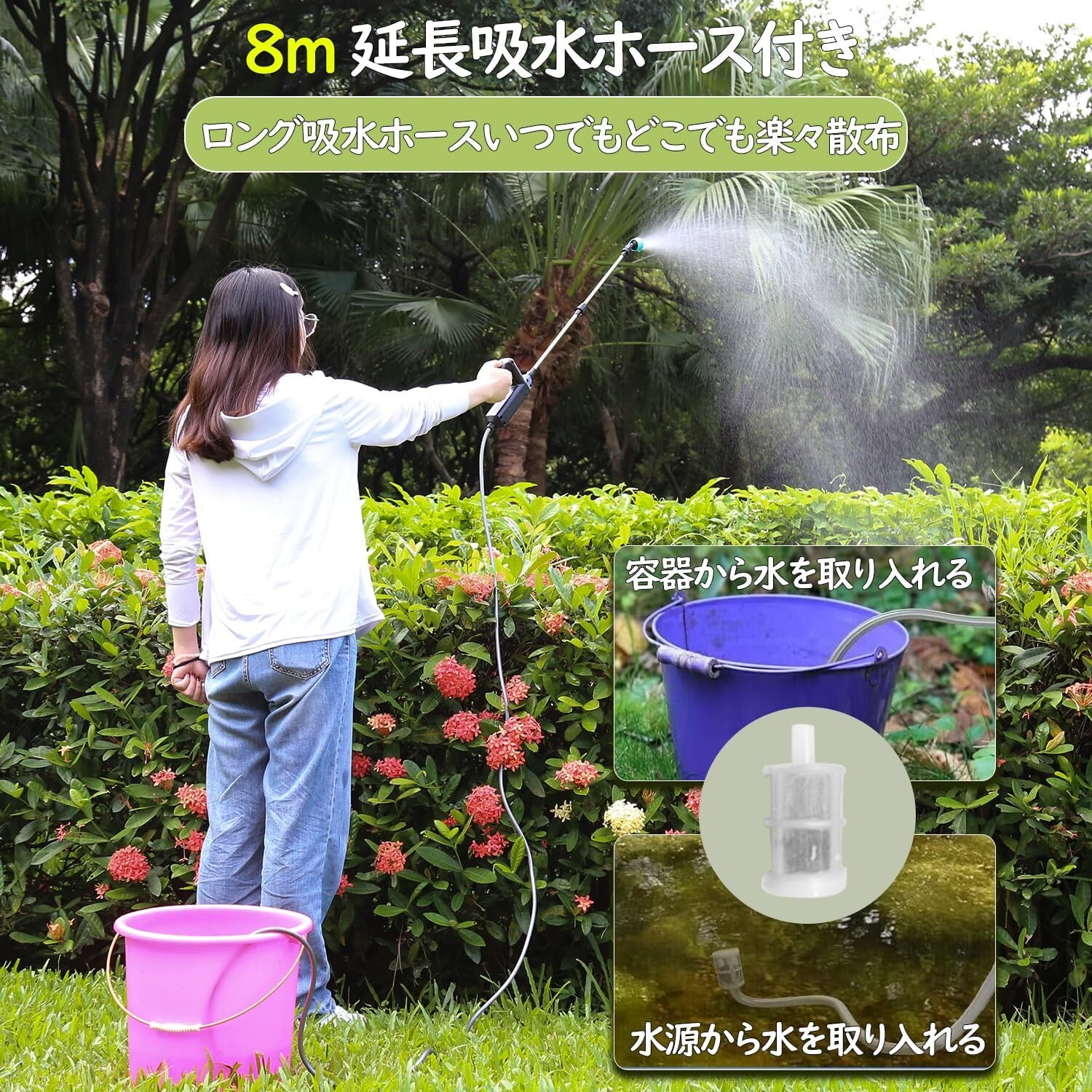 Richday 電動噴霧器 噴霧器 TYPC充電式 電池でラクラク 電動スプレー 2000mAh 2.5時間連続使用 3種類のノズル 延長ホース8M付 タンクなし 軽量 霧吹き 連続自動噴霧 圧力調整可 農薬散布 家庭園芸 家庭清掃 洗車散水 散布 エアコン洗浄 日本語取扱説明書