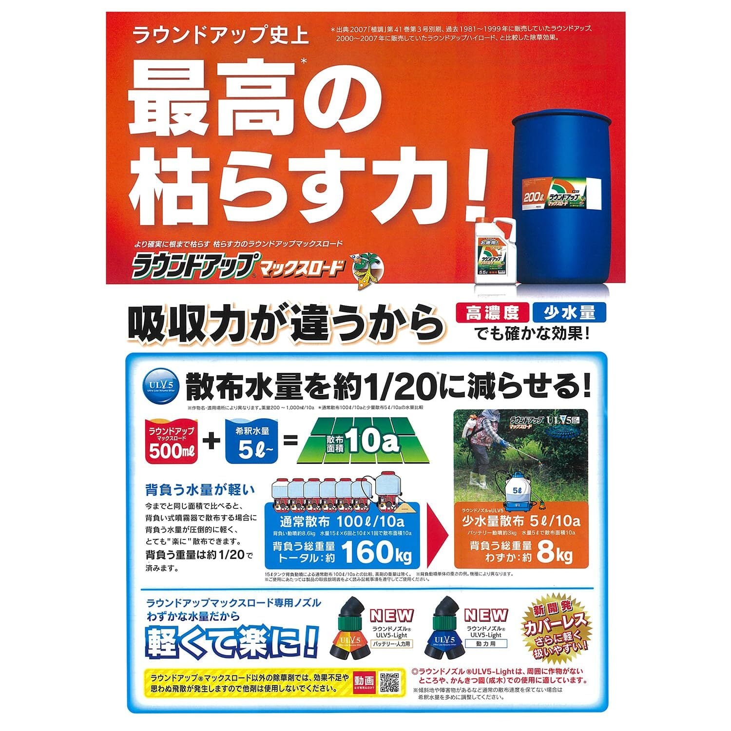 除草剤ラウンドアップ(R)マックスロード専用設計のラウンドノズル(R)ULV5は、