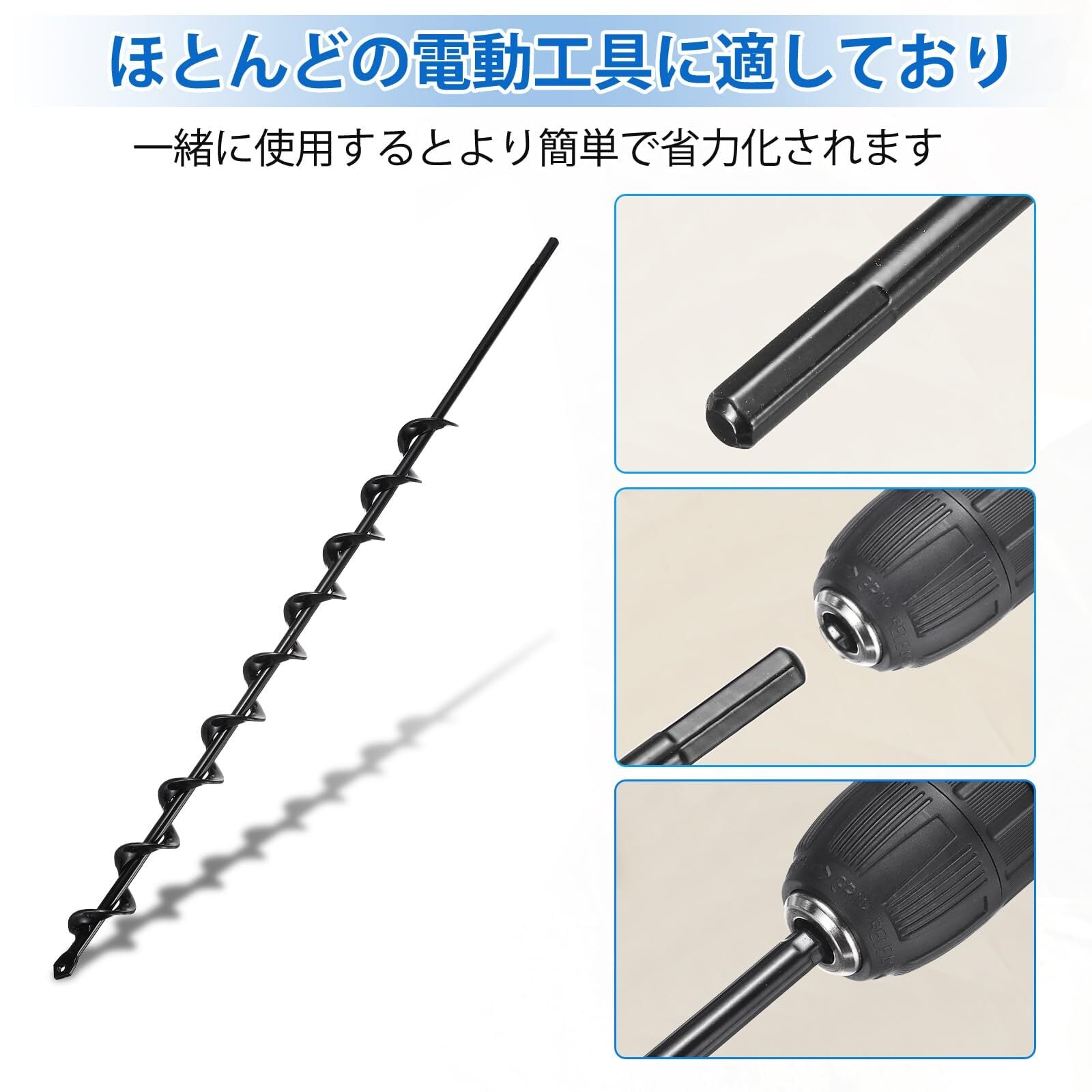説明:アースドリルは、電動ドリルにグランドオーガーを取り付けるだけで、固い土壌に効率的に穴や土を掘削できます。手掘りに比べ断然速い、固い、硬い土壌でもできます。初心者でも老若男女問わず簡単に穴あけ作業が可能。