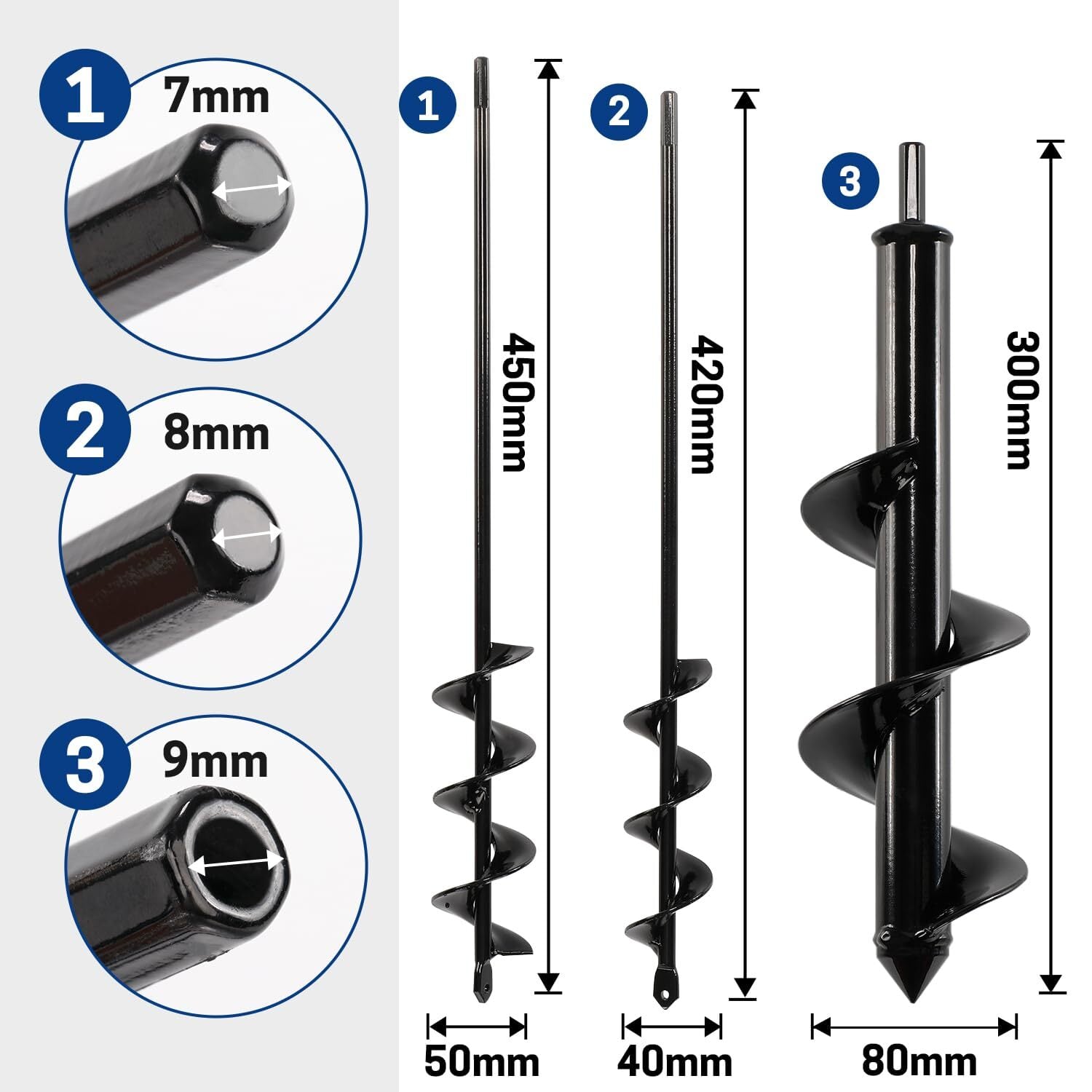 【在庫限り】園芸用アースドリル 3サイズセット 穴あけ器 電動工具 穴掘り DIY 農業 苗床 支柱設置 オーガードリル ビット (ロングセット)