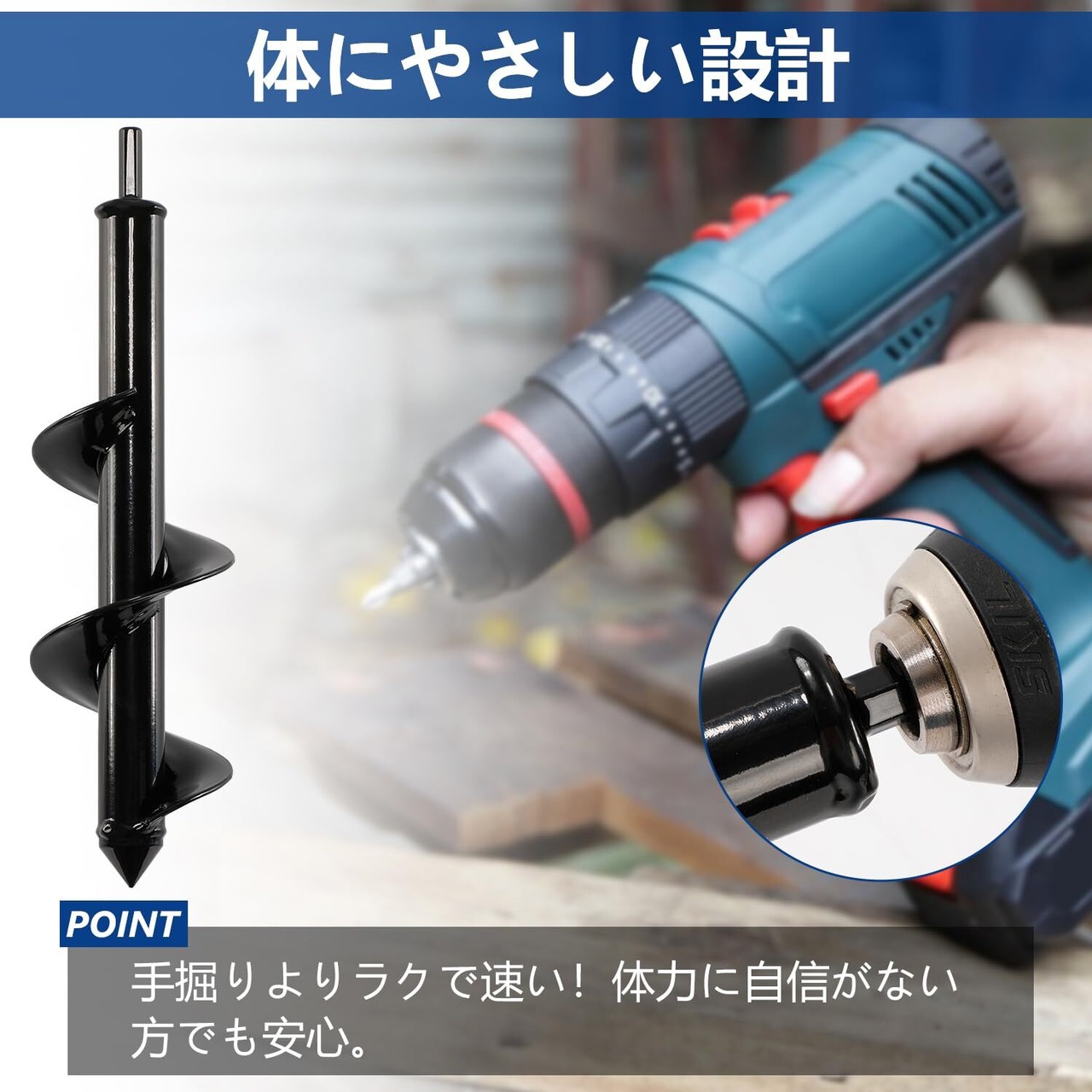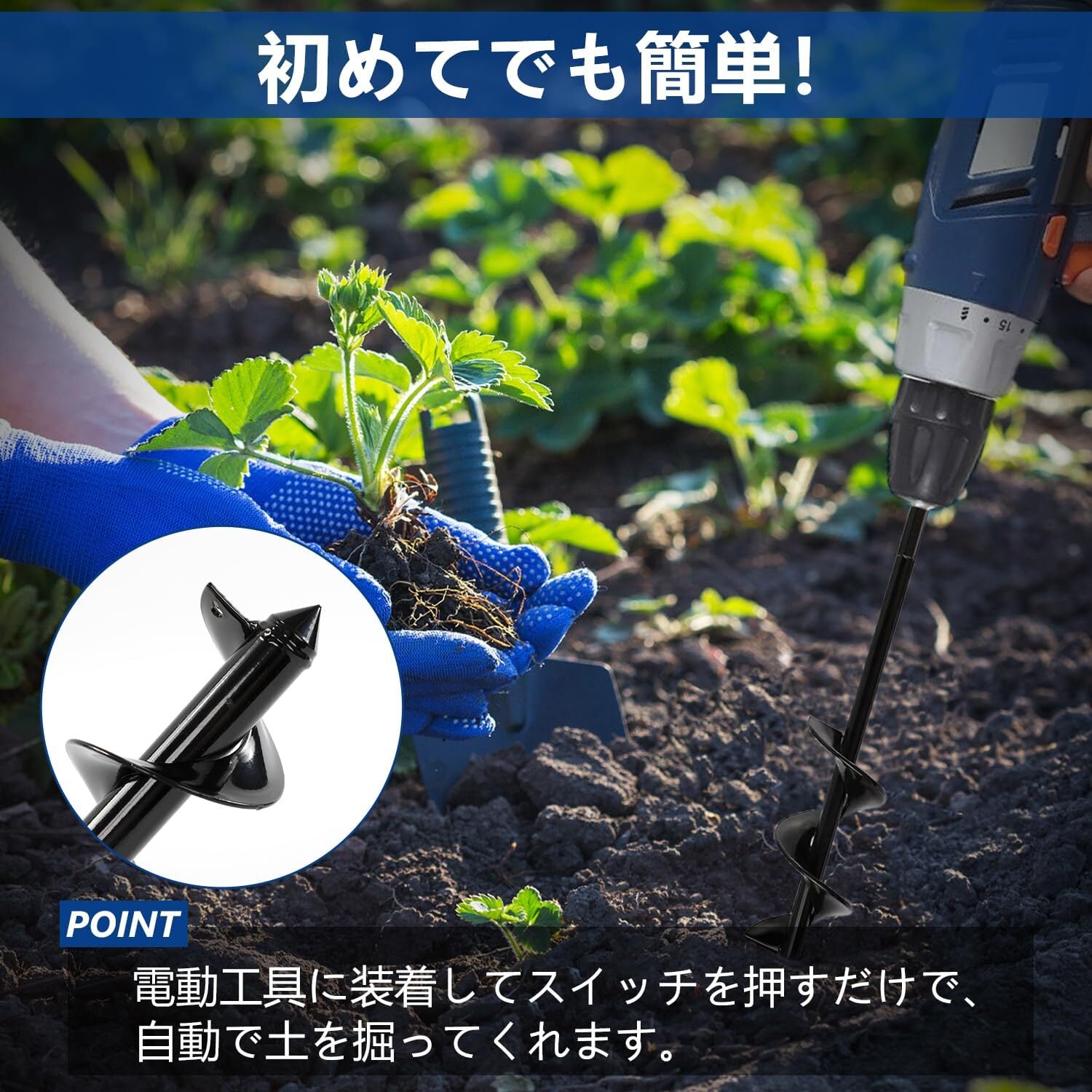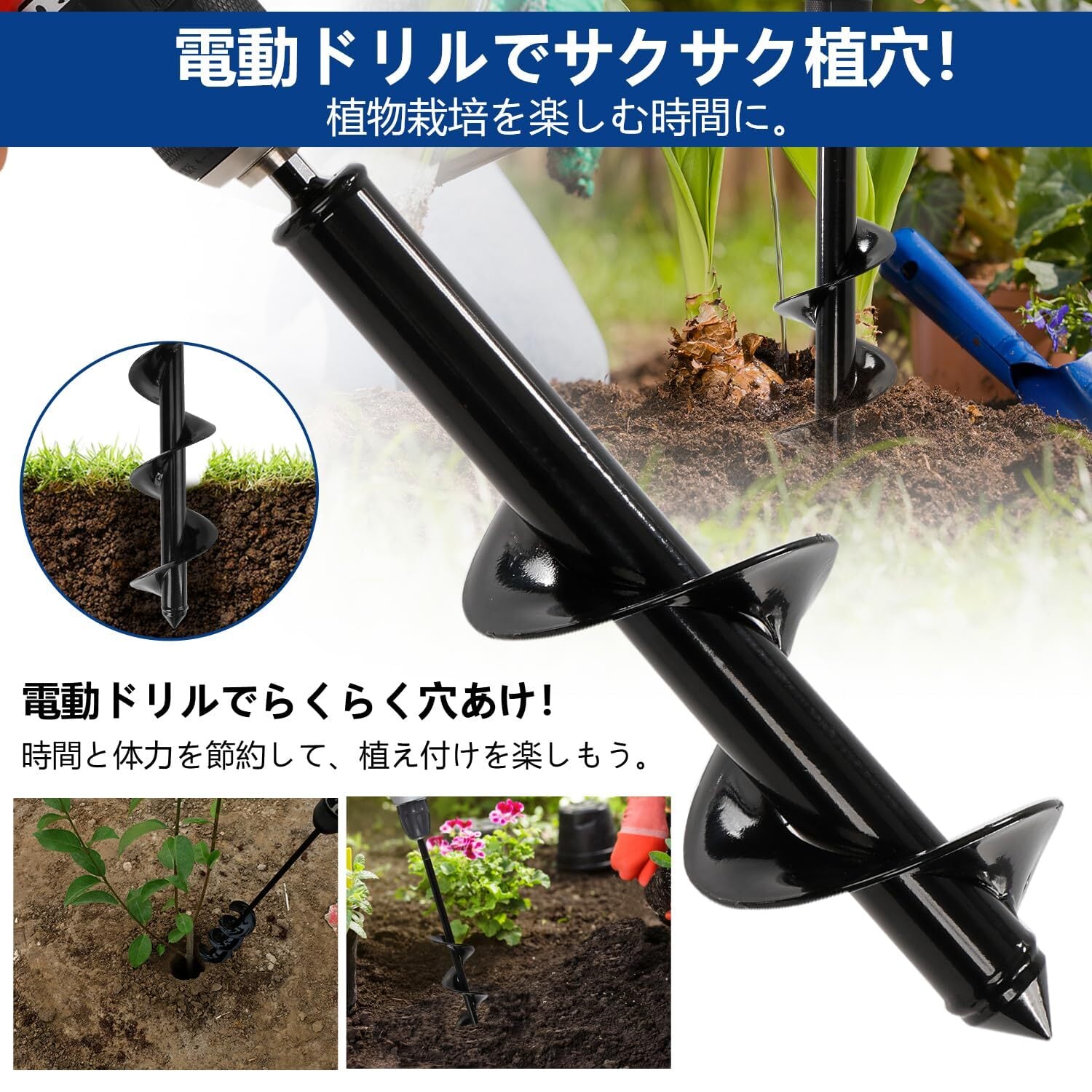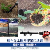 【電動工具で簡単操作】スイッチ1つで誰でも使える園芸用アースドリル ・電動ドリルに取り付けてスイッチを押すだけで簡単に穴掘り可能。初心者でもラクラク操作。 ・手作業と比べて時間と労力を最大90%削減(※メーカー比較テストによる)。