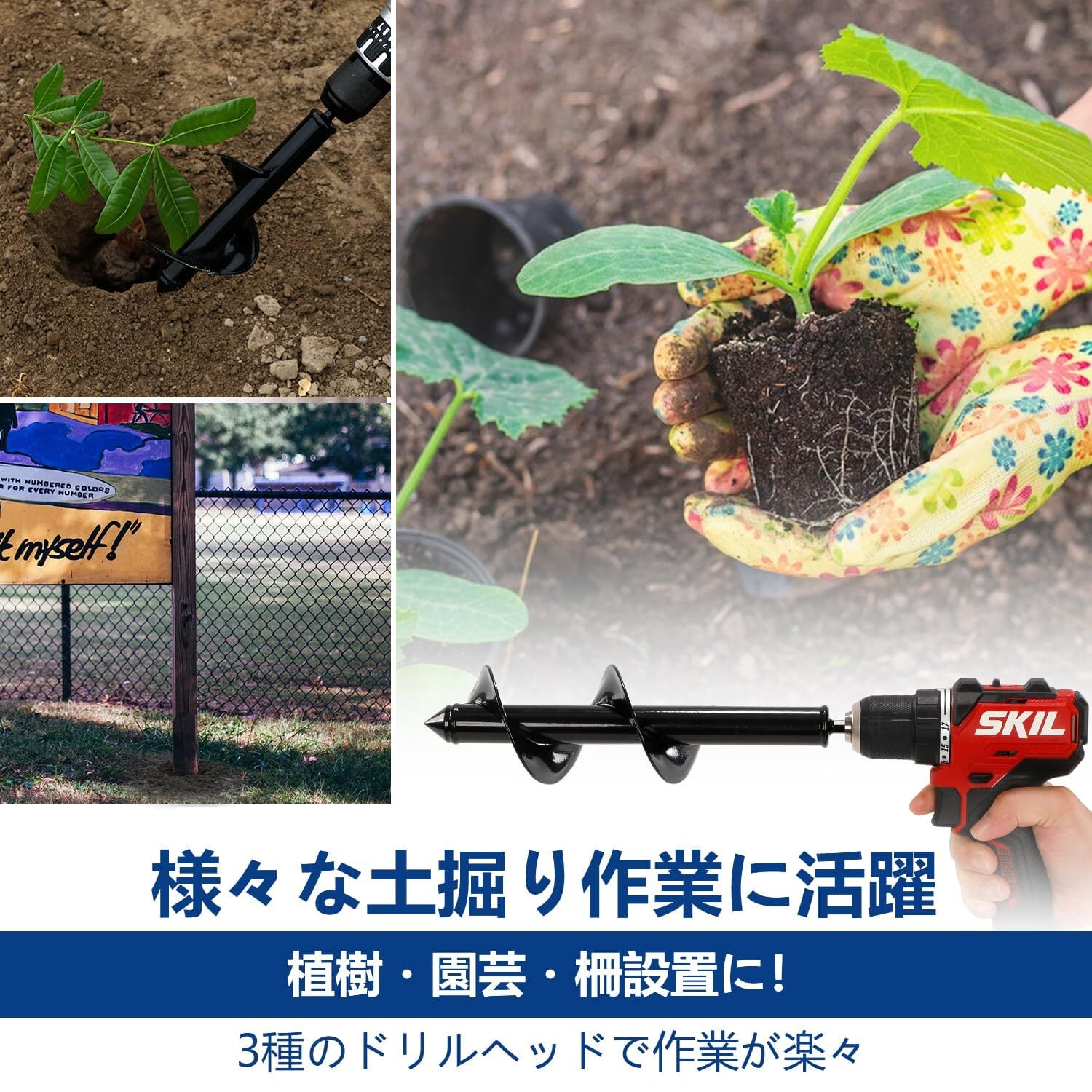園芸用アースドリル 3サイズセット 穴あけ器 電動工具 穴掘り DIY 農業 苗床 支柱設置 オーガードリル ビット (ロングセット)