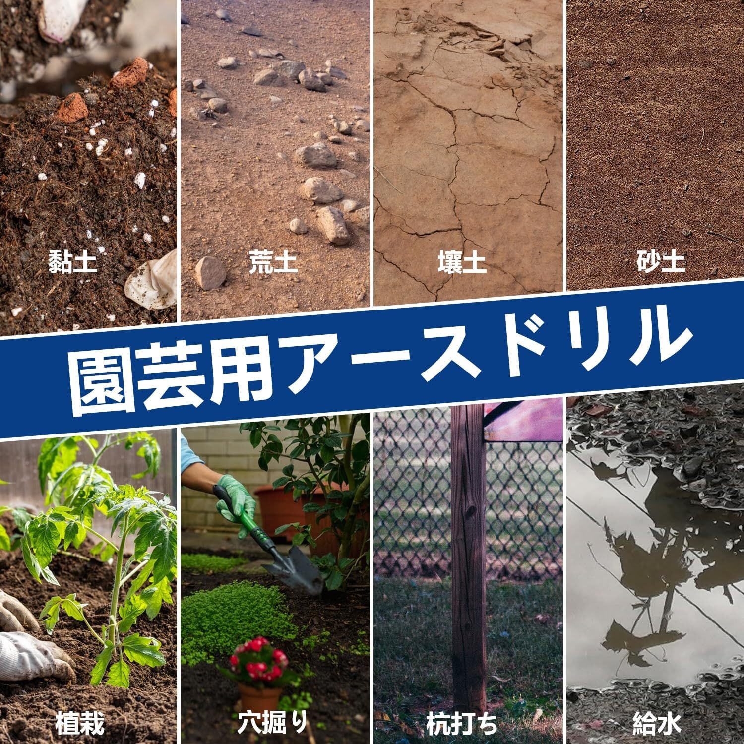 支柱・苗植え・杭打ちまで幅広く対応 ・支柱設置、苗の植え込み、杭打ちなど、園芸作業のあらゆる穴開けに活用可能。 ・家庭菜園、花壇づくり、フェンス設置など、季節を問わず重宝します。