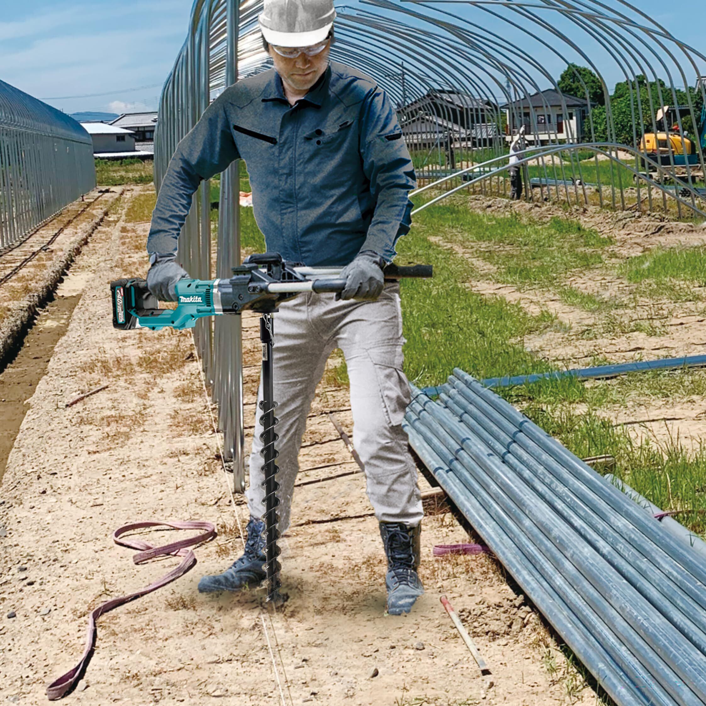 地面への深い穴あけが楽に行えます。