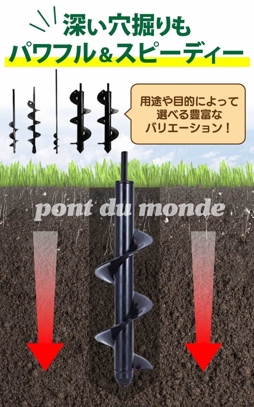 【在庫限り】(pont du monde) アースドリル オーガードリル 園芸 芝生 ビット ガーデニング 六角軸 穴掘り (8cm×30cm)