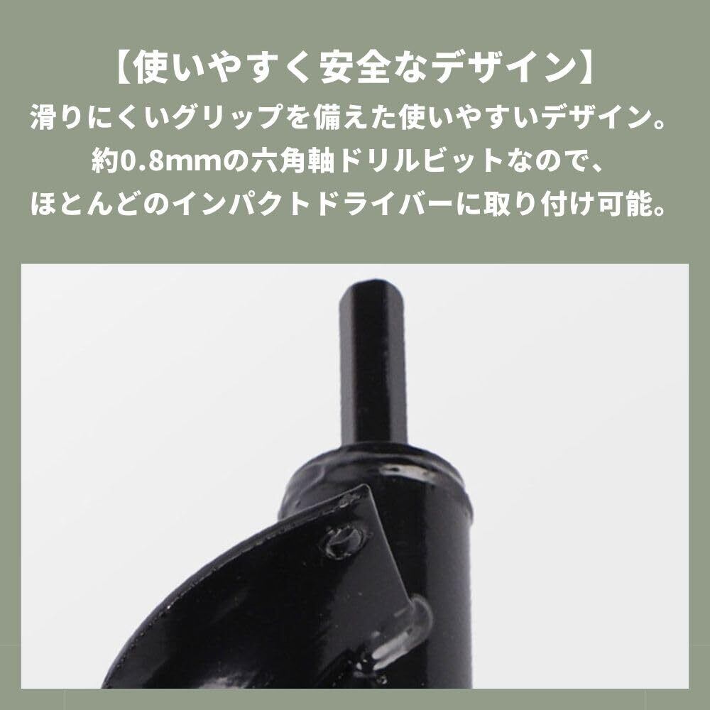 【使いやすく安全なデザイン】アースドリルは使いやすいデザインで、滑りにくいグリップを備えています。約0.8mmの標準サイズの六角軸ドリルビットですので、お手持ちのインパクトドライバーや電気ドリルなどに取り付け可能。