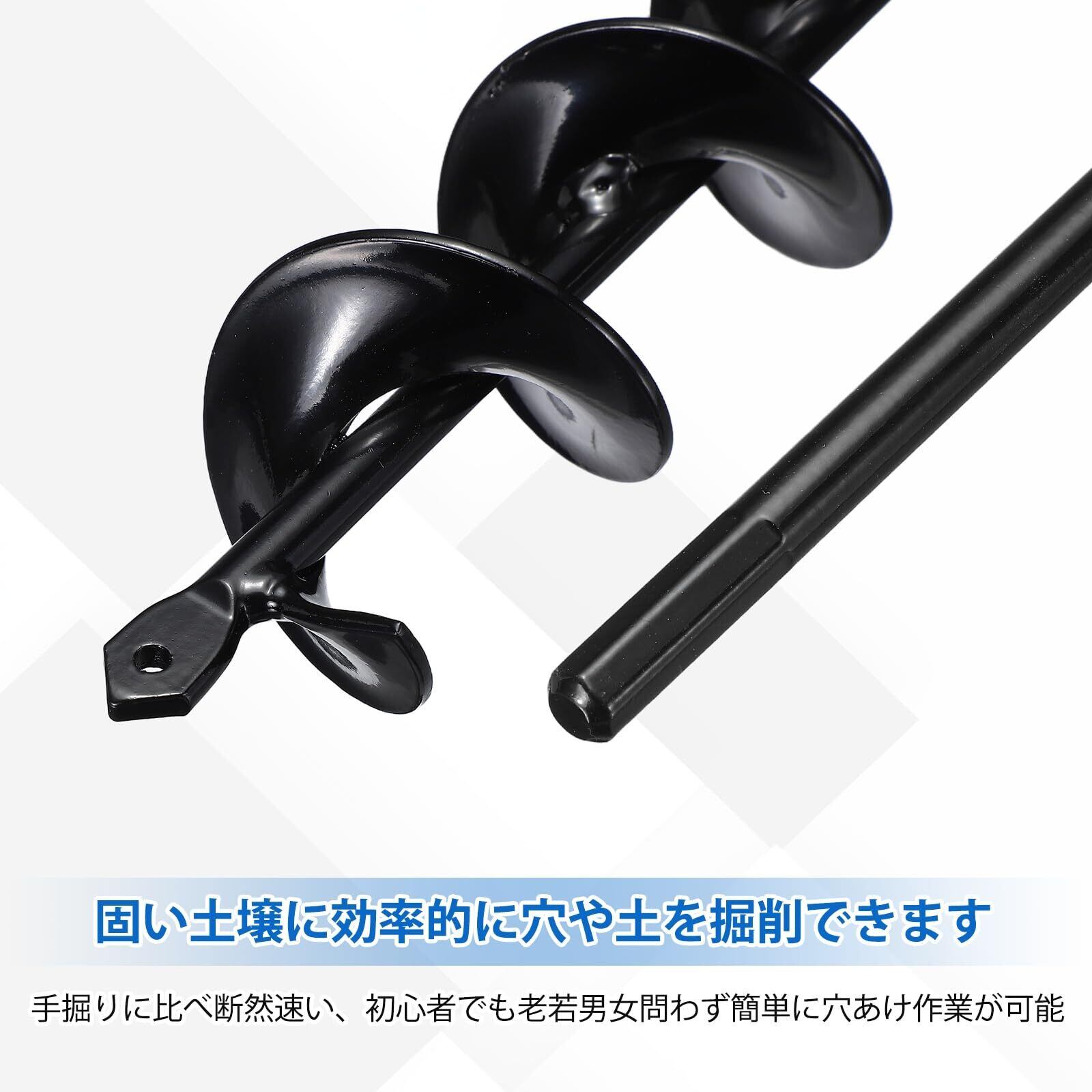 説明:アースドリルは、電動ドリルにグランドオーガーを取り付けるだけで、固い土壌に効率的に穴や土を掘削できます。手掘りに比べ断然速い、固い、硬い土壌でもできます。初心者でも老若男女問わず簡単に穴あけ作業が可能。
