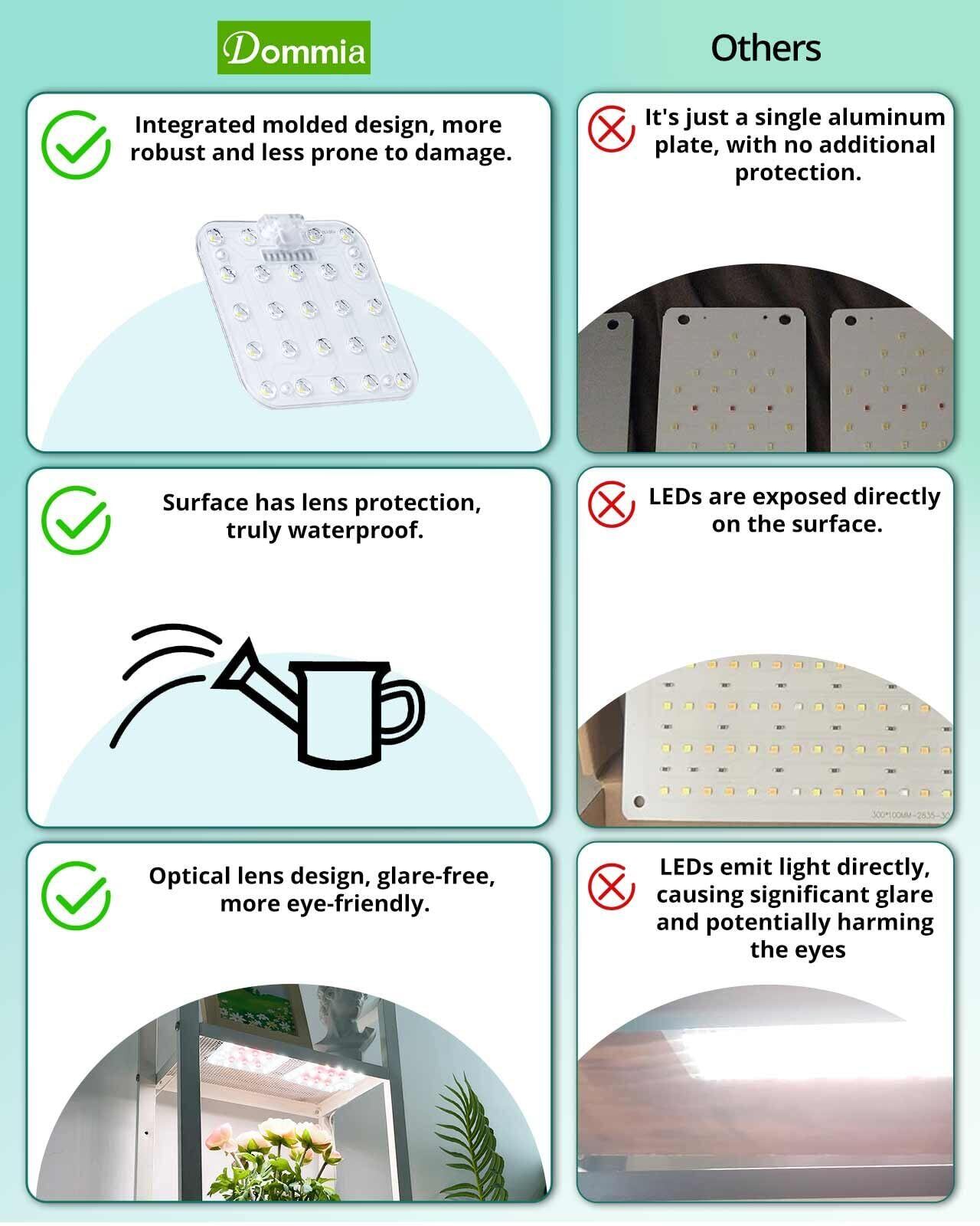 先進的な光学レンズカバー-DOMMIAアップグレードされた植物用ledライトを使用して、比類のない成長を体験します。この革新的な植物光は光学レンズと薄いアルミニウム板を持ち、光エネルギーを集中させ、95%以上の効率を確保することができる。観葉植物 ライト、最適なカバーと最大吸収を提供し、優れた効果を提供します。蓋は防水、静電気防止。