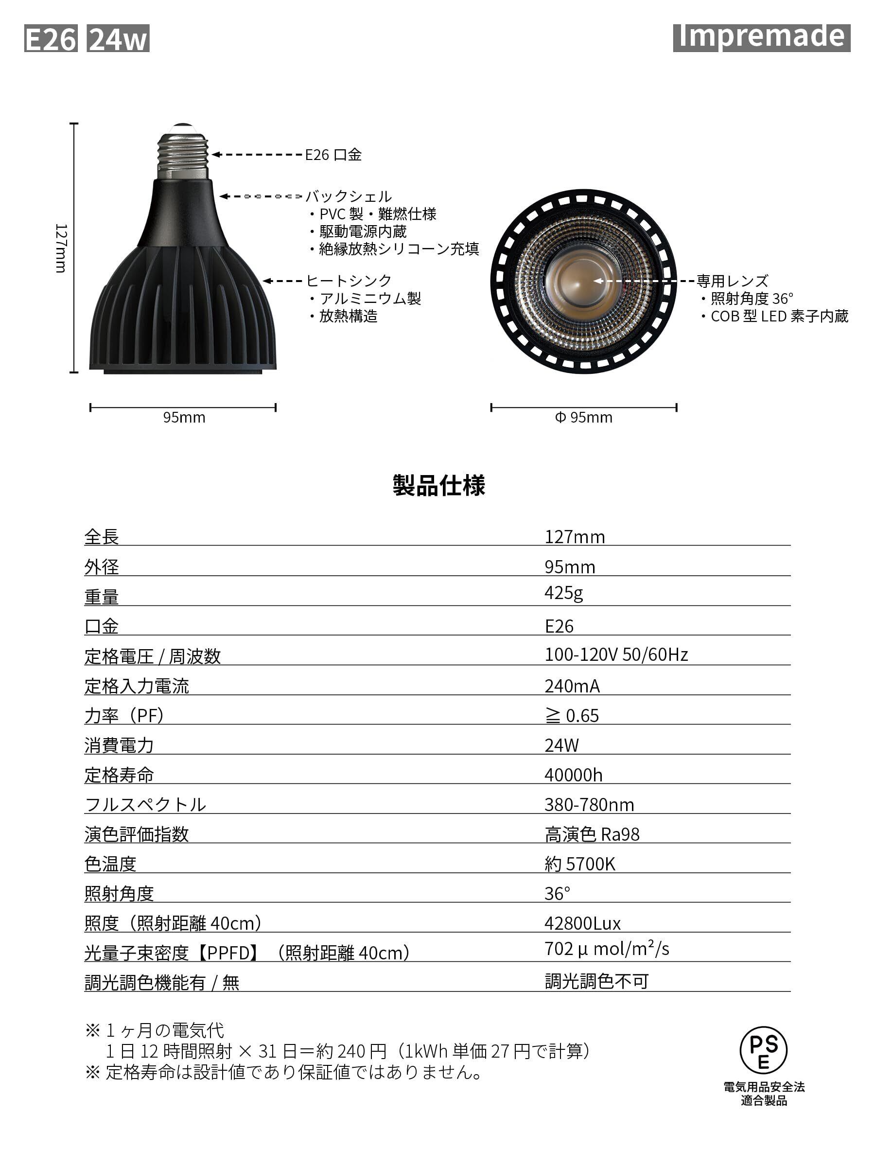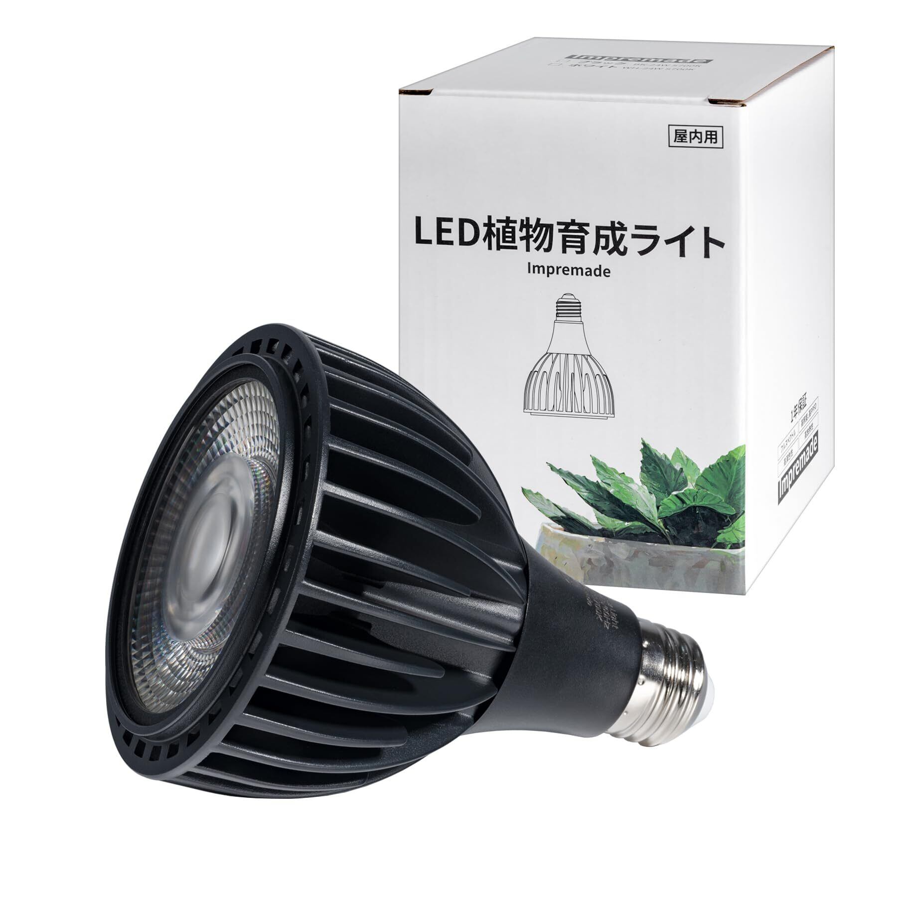 24W 植物育成ライト 照射角度36° LED 植物用ライト E26口金 5700K 白色系 昼光色 フルスペクトル 高演色性 高照度 高PPFD 省エネ設計 長寿命 多肉植物 塊根植物 アガベ 観葉植物 室内栽培 家庭菜園 野菜育成 PSE認証済 (Black)