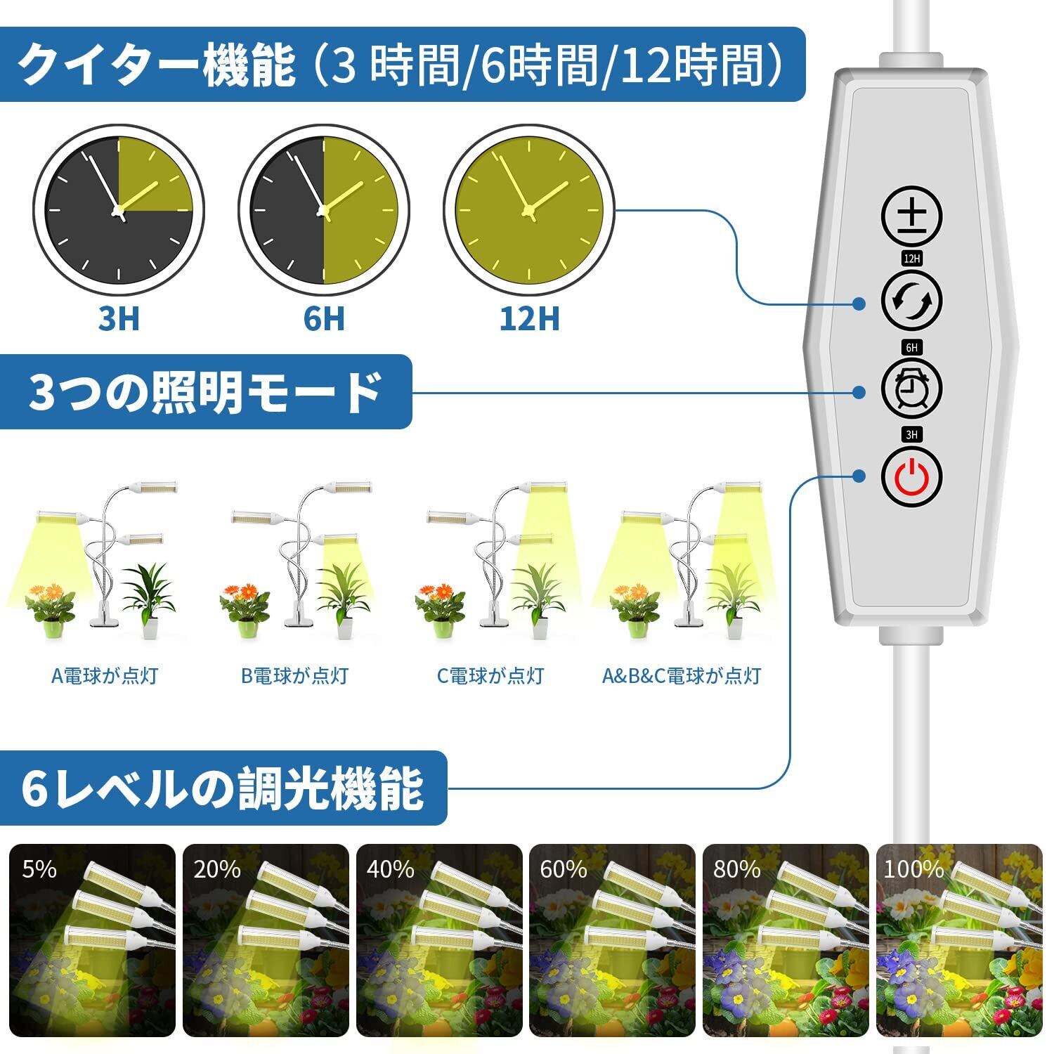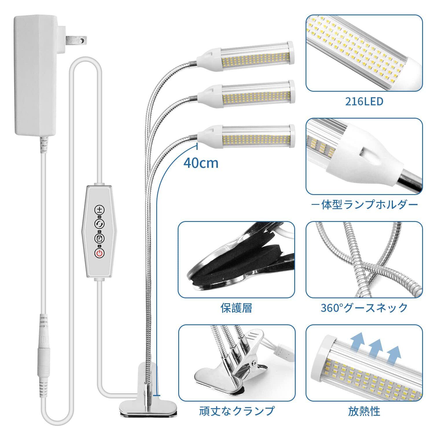 360°調整可能な3ヘッド設計:この植物ランプは調整してどこにでも配置することが容易である360度柔軟な首とクリップを備えています。グースネックは丈夫なステンレス製で、柔軟性があり、どんな方向にも調整できます。私たちの長いグースネックは、オフィスや家庭、温室で使用するために、より多くの植物にエネルギーを提供して、光がより広い領域をカバーするのを助けます。