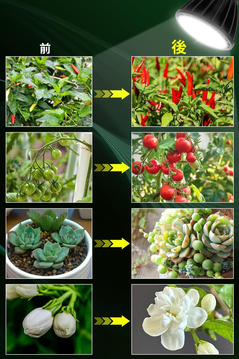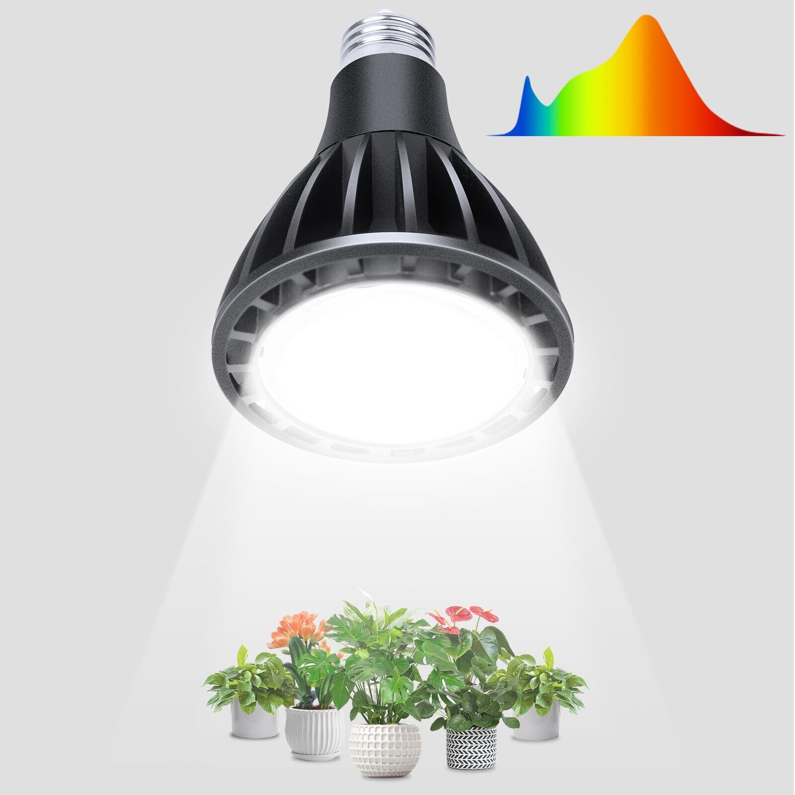 〖高演色性・取り付け簡単〗:新型LEDフルスペクトル植物成長ランプは植物に全スペクトルの光を提供し、色温度は5800Kで、演色性評価数はRa98に達し、太陽光の自然発色指数(Ra100)に近く、照らされた植物の色は自然光の下のように、植物の最も美しい色を反射することができる。正確な光放射は植物の光合成効率を高め、植物をより速く、より健康に成長させることができる。LED植物用ライトはE26口金設計を採用し、工具が必要なく、設置が簡便である。