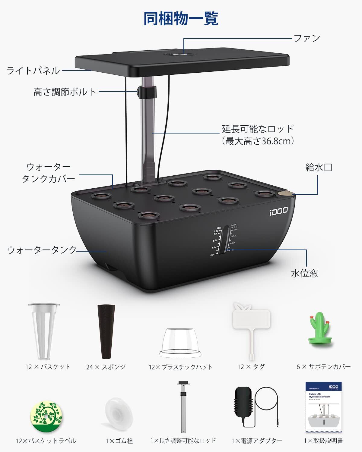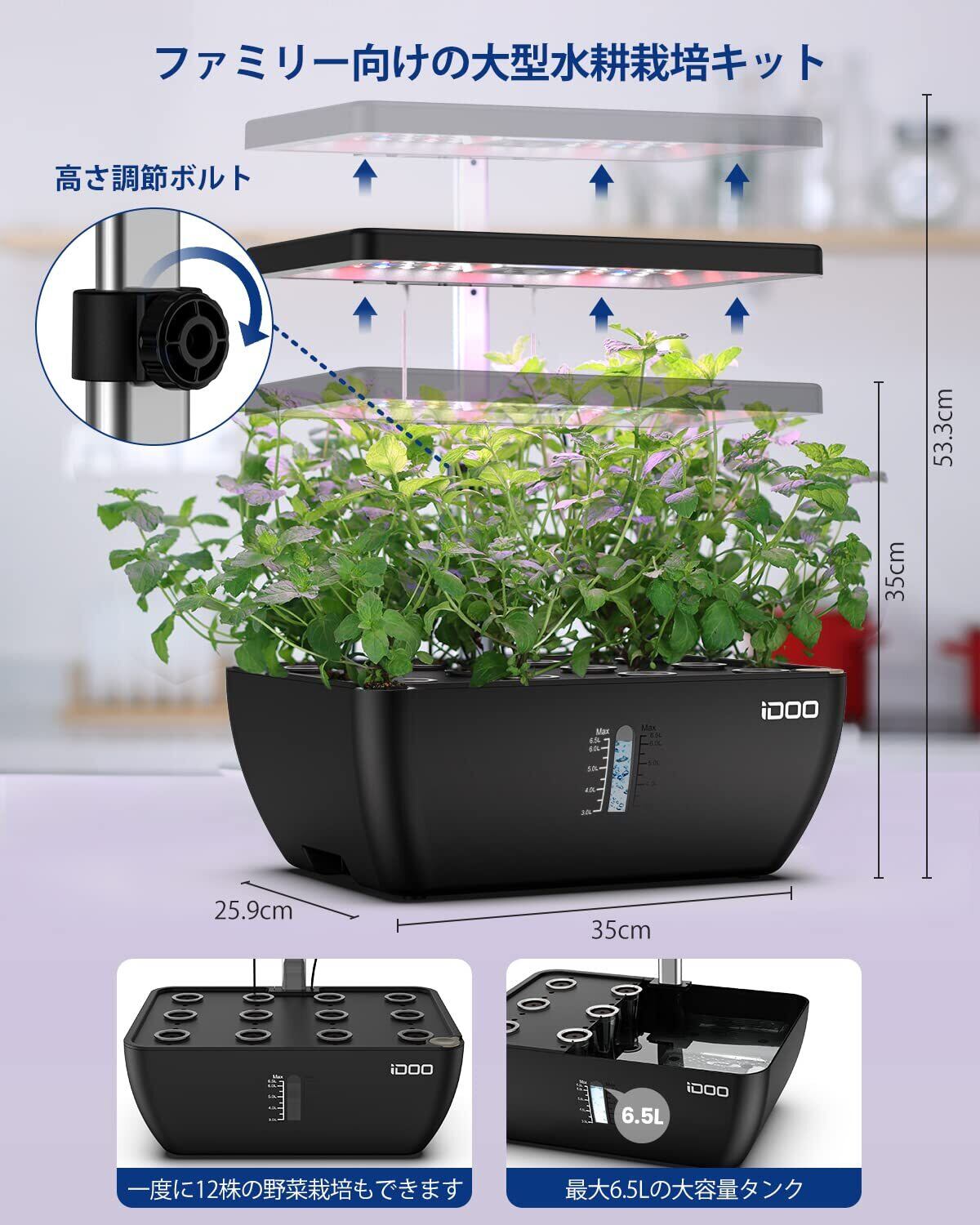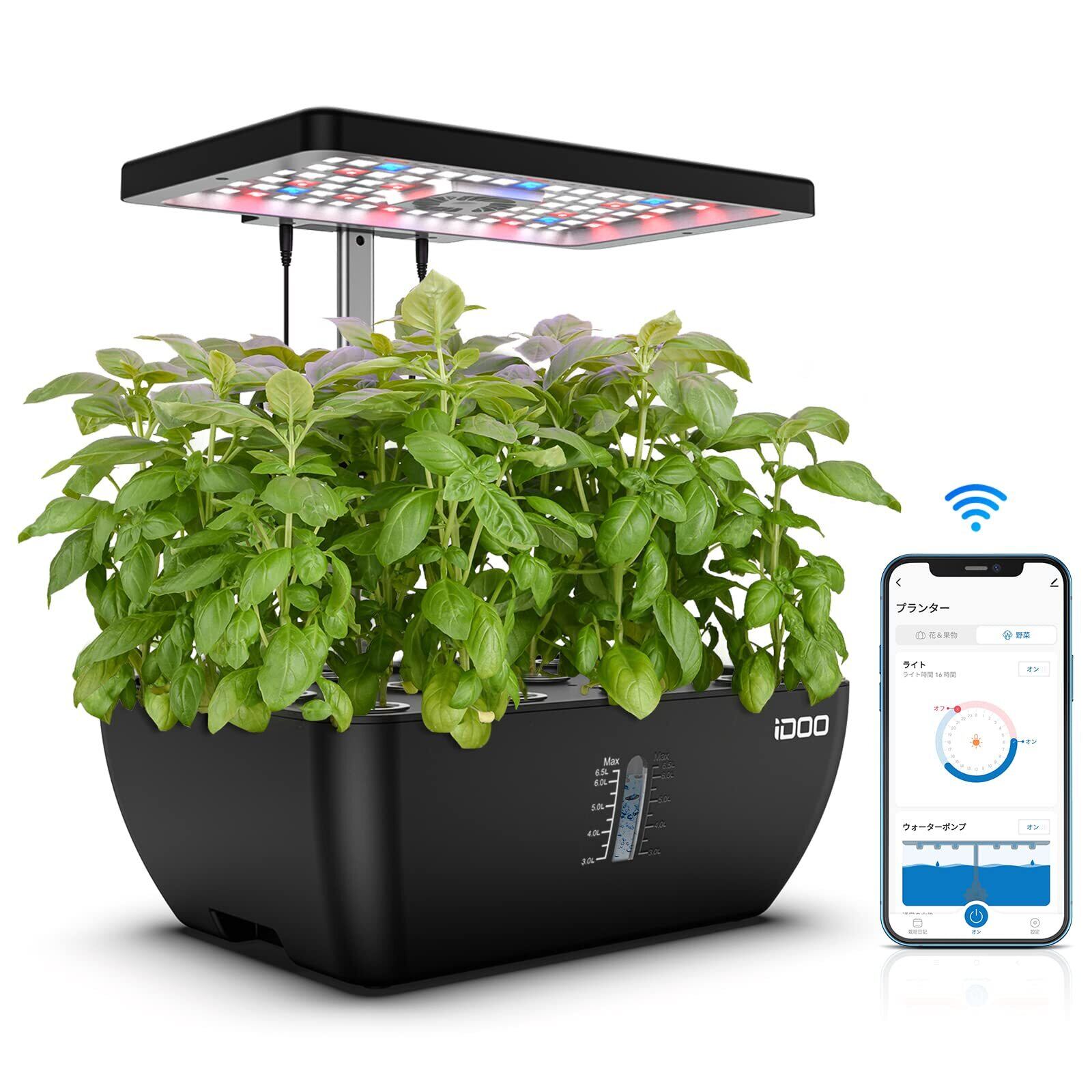 【特別価格】iDOO 水耕栽培セット 水耕栽培キット 野菜栽培セット Wi-Fi アプリ対応 遠隔操作 室内 おしゃれ 家庭菜園 観葉植物 自動散水 プランター 植木鉢 発芽 インテリア 菜園 苗 果物 野菜 植物育成LEDライト 自動水循環システム搭載 ランプシェードの高さ調節可能 同時に12株野菜栽培可能 ※販売元がRENPHO JAPAN以外の商品は対象外です