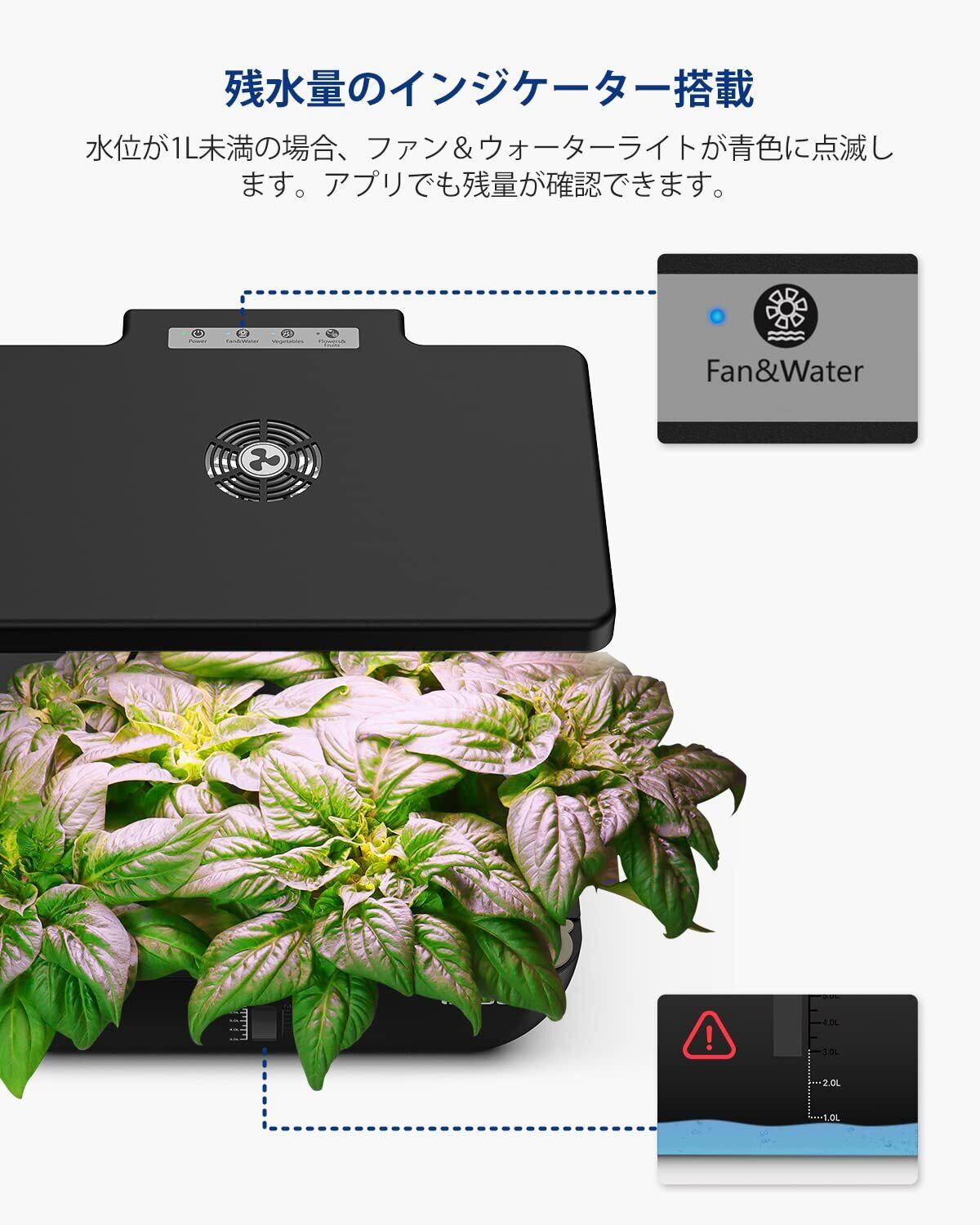 ▶6.5L大容量タンク・1年◀ウォータータンクは大きめなサイズ6.5Lで、液体肥料の追加頻度が少なくて済み、土耕栽培より大幅に手間を省けて育てることができます。製品は、購入後一年間の長期付きです。万が一、ご購入された製品に不具合が生じた場合は、の購入履歴よりまでご連絡ください。