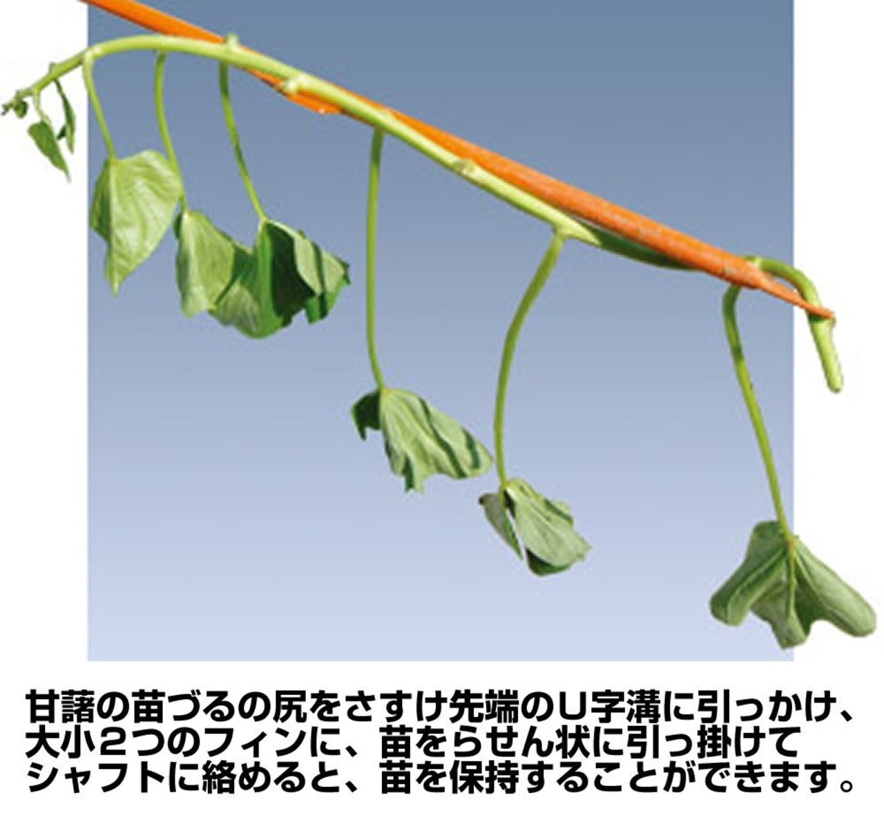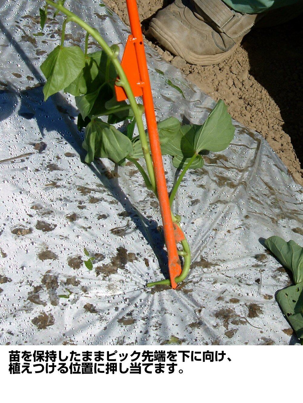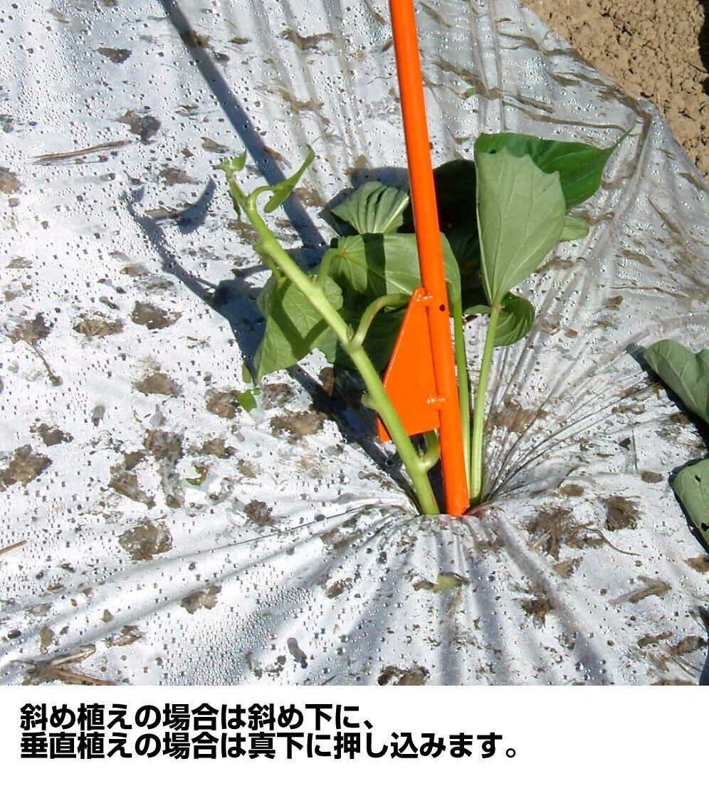 カンショ(さつまいも)の苗を立ったまま楽に植え付けすることができます。