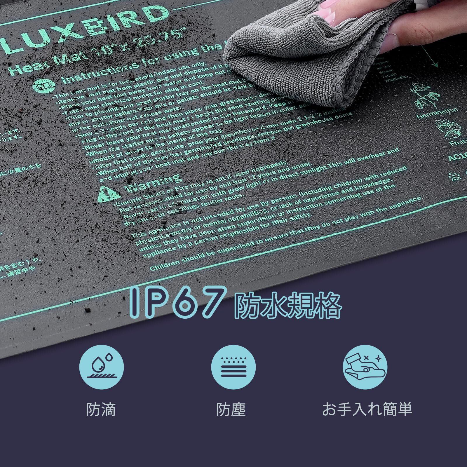 Luxbird ヒートマット サーモスタット付き 園芸発芽マット 30 Watt 温度調節 育苗器 ヒーターマット 植物加熱用 IP67 防水規格 発芽率アップ 温床関連 室内栽培 育苗マット 水耕栽培 25x52cm
