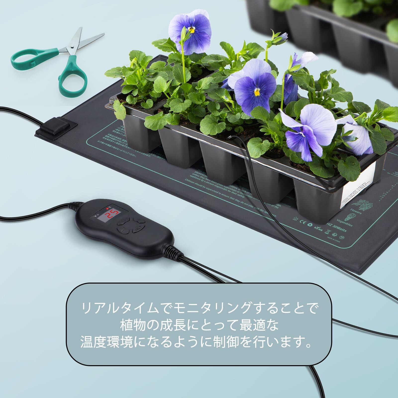 苗の生存率を高め:冬期の栽培で苗の根や葉に20℃ ~ 30℃ (68℉ ~ 86℉) の温度を維持することで、植物の成長が促進され、苗を強く健康に育ちます