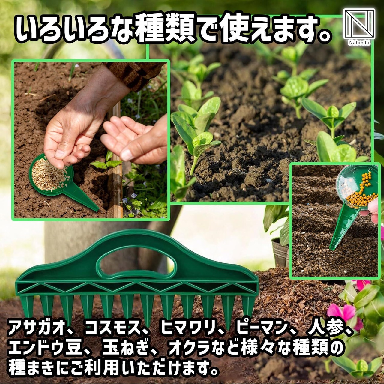 【いろいろな種類や場所で】アサガオ、コスモス、ヒマワリ、ピーマン、人参、エンドウ豆、玉ねぎ、オクラなど様々な種類の種まきにご利用いただけます。家庭菜園、会社、保育園、幼稚園、オフィス、店舗などいろいろな場所で使用できます。 子供でも利用しやすいため、夏休みの自由研究などにも最適です。