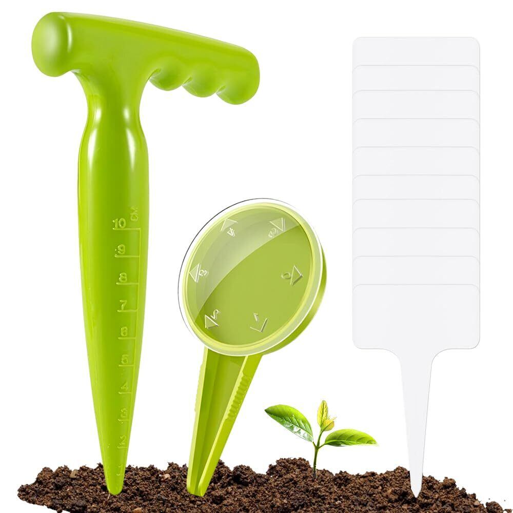 12点セット播種機 種子播種機 花の播種機 5速調整可能 園芸穴ドリル 庭農業 農業小道具 ガーデニングツール (1つのパンチ+1つの種まき器+10枚のラベル)