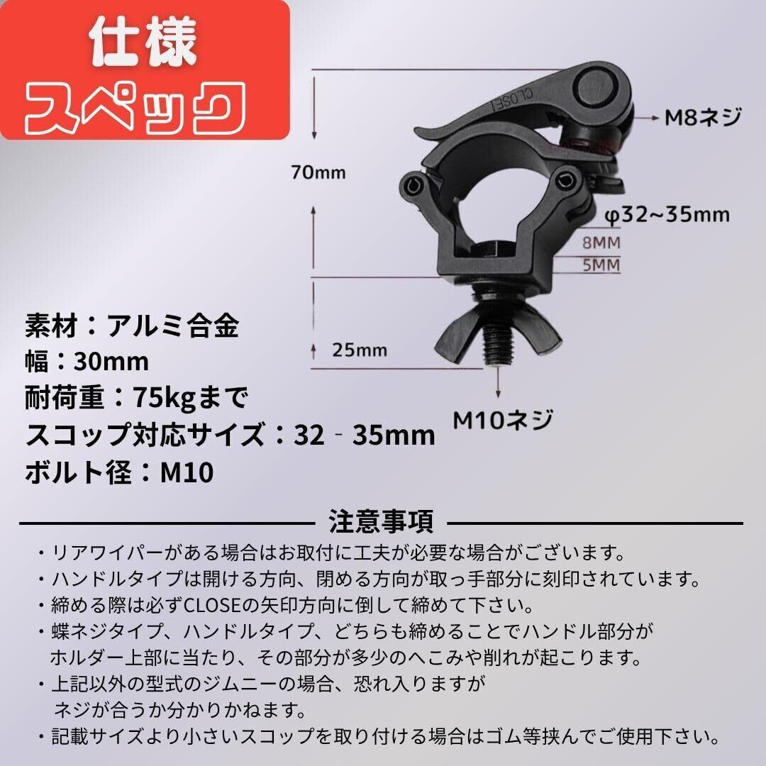【2025最新】スコップホルダー ブラック 2個セット クランプ ジムニー 4WD オフロード 取付 固定 ハンドル式 汎用 軽トラ トラクター 車 金具