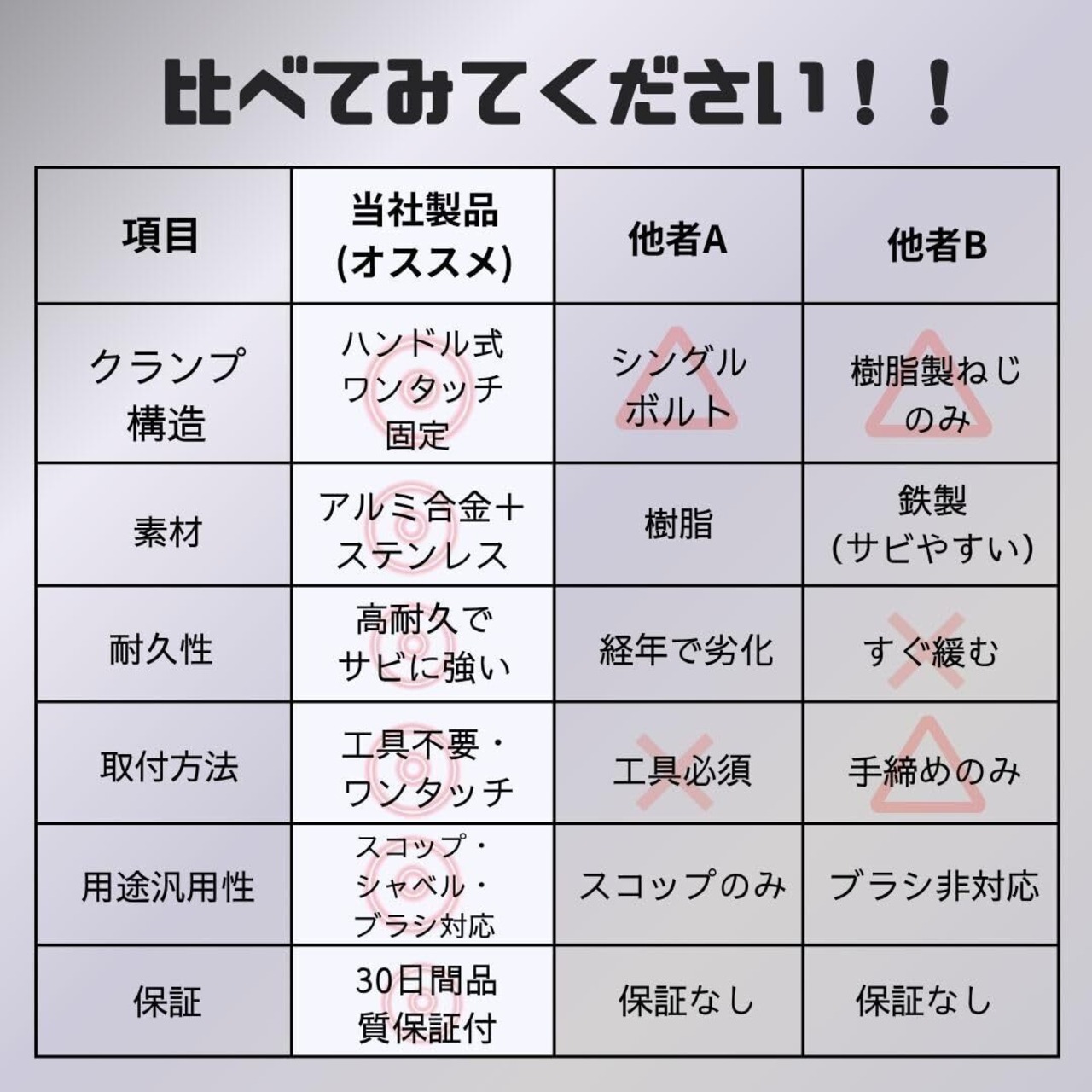 実用的設計: スコップやツールを安全に固定し、必要な時にすぐに取り出せる実用的な構造