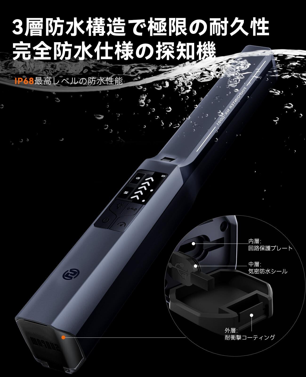 「IP68防水&耐衝撃設計で過酷な環境にも対応」 検知コイルは水深3mまで防水。耐衝撃ボディでビーチ・河川・湿地などあらゆる場所で活躍!