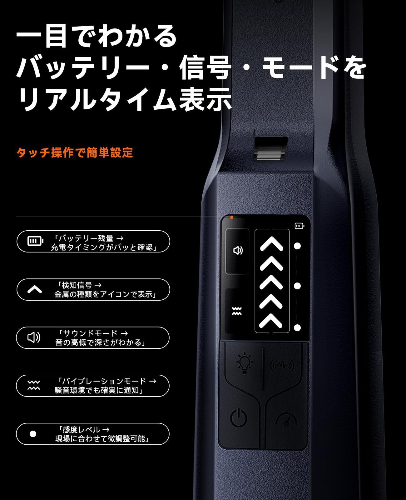 「初心者でもプロ並みの簡単操作」 ワンボタン電源ON&自動感度調整機能付き。音・振動・音+振動の3モードで環境に合わせてアラート!