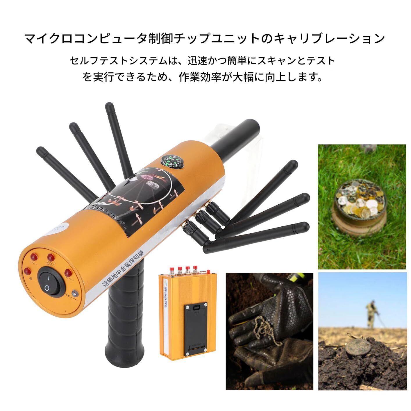【感度と安定性の向上】宝物探知機には、迅速な方向測定のためのコンパスと、信頼できる性能のための優れた感度と安定性を提供する6つのアンテナが付属しています。