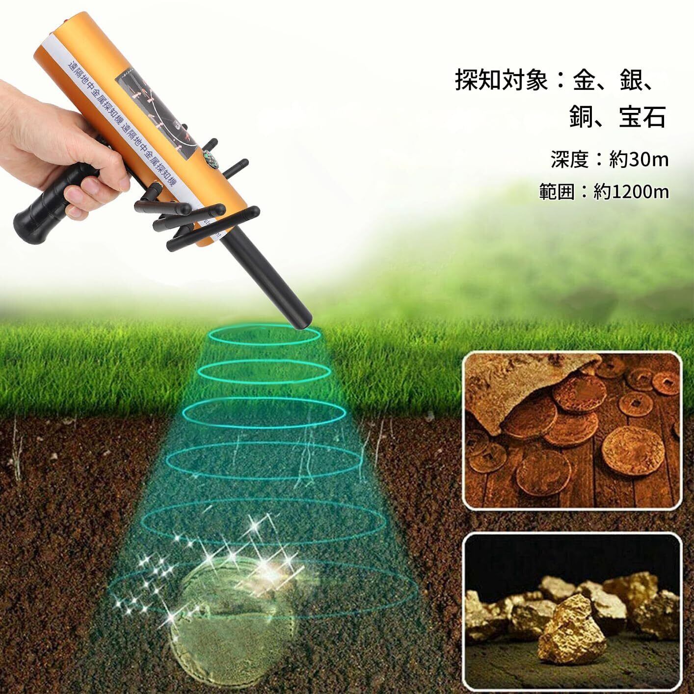 TOPINCN 金属探知機 ハンドヘルド型 銅/金/銀/宝石用 簡単操作 コンパス付き 1200m探知範囲 30m深度探知 高感度