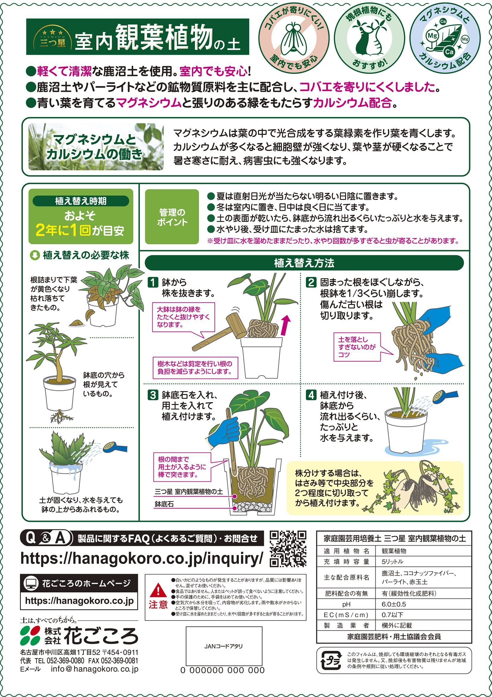 花ごころ 三つ星 室内観葉植物の土 コバエも寄りにくい自然素材 5L
