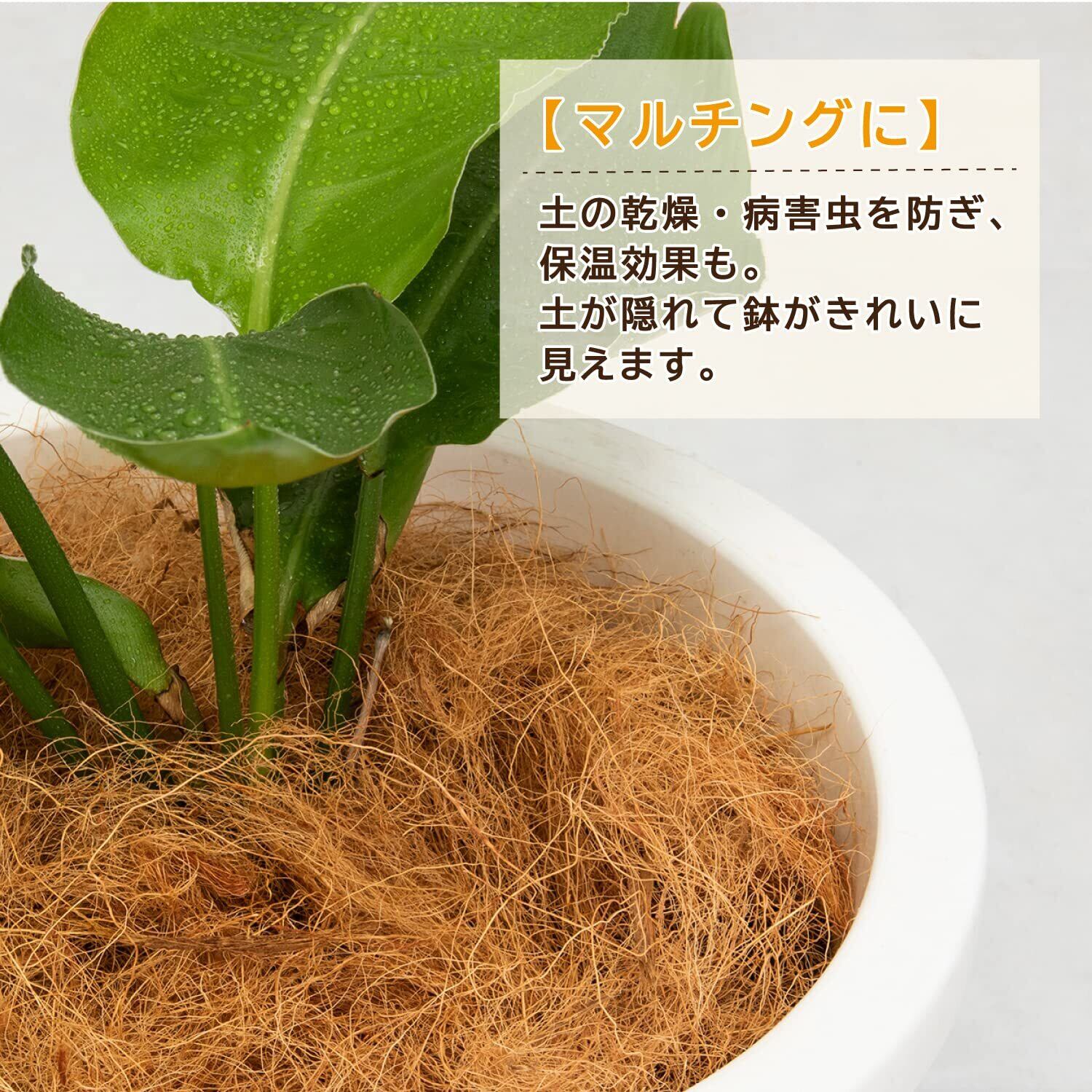 商品名:ココヤシファイバー 500g内容:約500g材質:ココヤシ繊維生産国:中国【使用目安】●100gあたり植木鉢8号サイズ(直径24cm)で約1.5~2鉢分【特長】●ココナッツのヤシの実の中果皮の繊維からできたココヤシファイバー。●通気性、水はけが良くガーデニングのマルチング材として一年中使える。●観葉植物のマルチングや鉢植えの装飾、土漏れ防止や鉢底石の代わりとして。●夏は土に直射日光が当たるのを避けて土の乾燥を防ぎ、冬は霜よけにもなる。●土の表面を隠すことで見た目もおしゃれになり、泥はねや害虫を防ぐ効果も。【ご注意】●本来の用途以外には使用しないでください。●ご使用の際、繊維が飛び散る場合があります。●お子さまの手の届かない場所で保管・処理してください。●火気のそばや直接日光の当たる場所、高温多湿な場所を避け、風通しの良い場所で使用・保管してください。established in 1970【ASTRO CO., LTD】1970年創業、不織布収納日用品メーカーとして「アストロ」のオリジナル商品を販売しています。生地の開発から製造、流通、品質管理を自社管理。収納用品をメインに多彩な日用品を企画販売してまいりました。アストロは暮らしを楽しく便利にさせる商品をこれからも創造し続けます。established in 1970