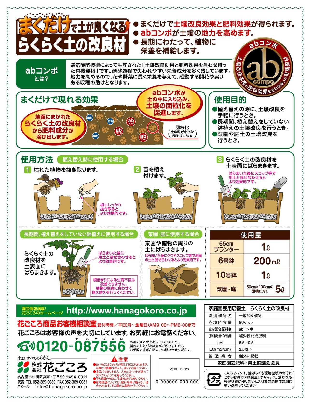花ごころ らくらく土の改良材 まくだけで古い土を再生 5L