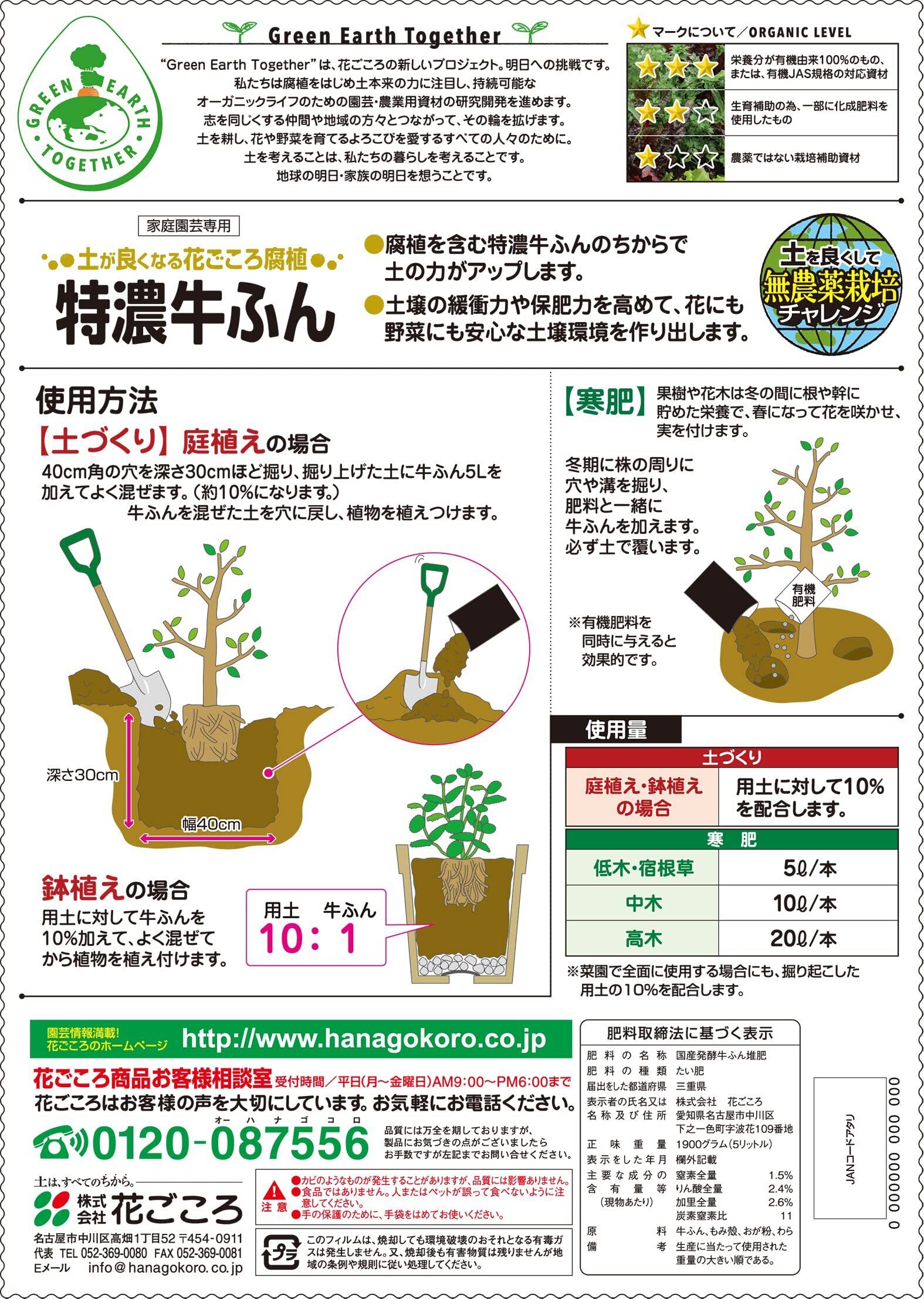 花ごころ 特濃牛ふん 臭わない発酵牛ふん 5L