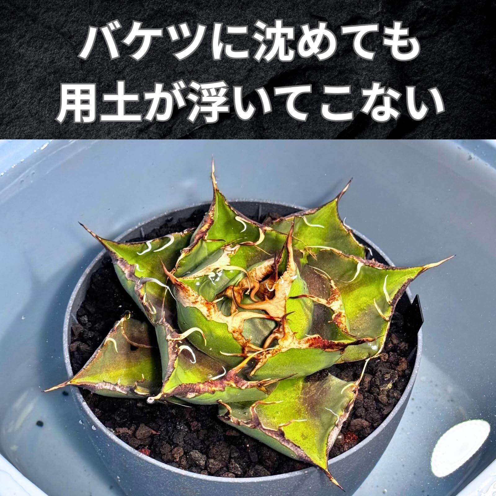 【バケツドボンでも用土が浮かない】 密度の高い玄武岩が表土を抑え、株ごとバケツに沈めても、軽石などが浮いてこないため、殺虫作業が楽になります。