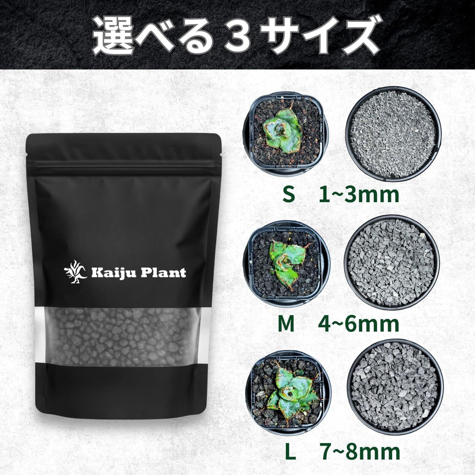 Kaiju Plant 怪獣バサルト|化粧石 化粧砂 黒|玄武岩|園芸用 土改良材|多孔質・通気・排水・保水性UP|アガベ 多肉 塊根植物向け (M(4~6mm))