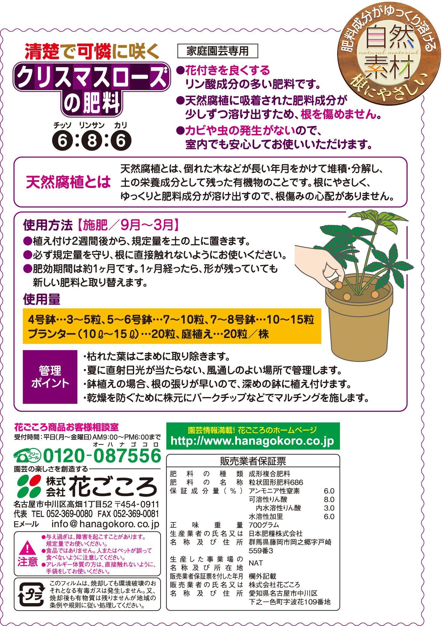 花ごころ クリスマスローズの肥料 肥料成分がゆっくり溶けて根にやさしい 700g